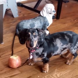 Zero is a male Dachshund about 2 years old. Carefully selected as a great representative of his breed, Bridget decided to make him part of their program. Bridget has passed Good Dog’s screening process, which involved a review of their breeding practices, environment, and the mental and physical health of their dogs.