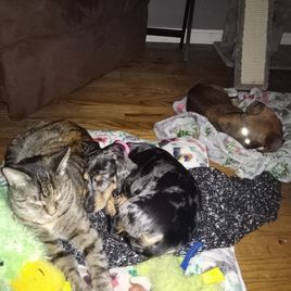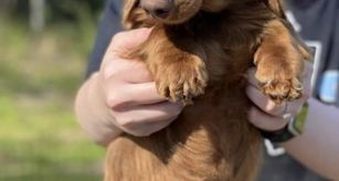 Bridget of Knox Ridge was a pleasure to work with and always kept me up to date. She was very knowledgeable and answered any questions I had throughout the process. When it came time to pickup my puppy, she even met me halfway to make it easier. Physically and personality wise, Murphy is a perfect example of the dachshund breed I love so much. He has been a joy to train thanks to his inherent smarts and great temperament. He is so sweet and playful; Bridget did a wonderful job socializing him. Murphy is very happy and healthy in his forever home! Whenever it comes time to get Murphy a sibling, I will absolutely choose to work with Bridget again.