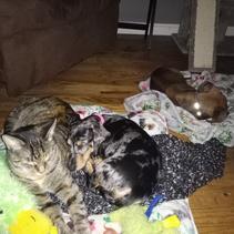 Giving the two little ladies some extra buddies to play with until they go home. Perdita the black and tan LH female is still looking for her forever home.