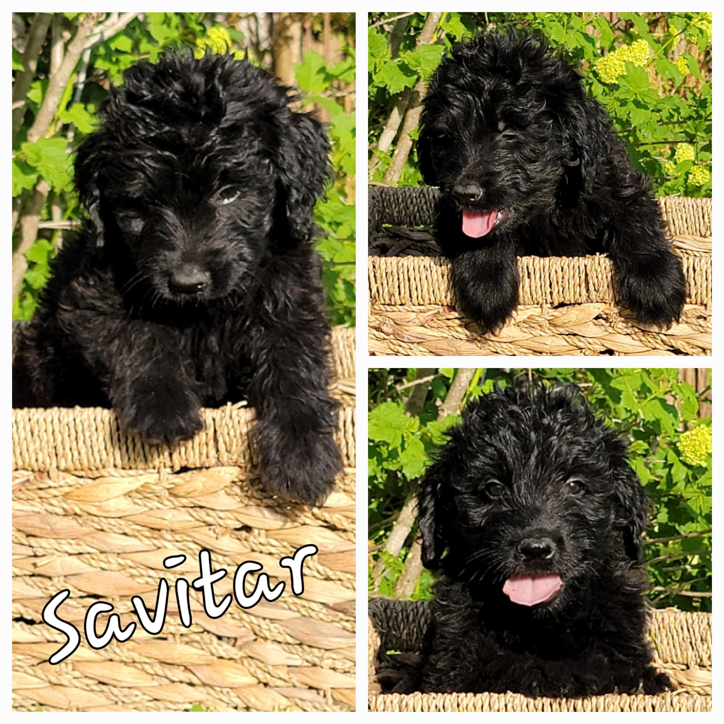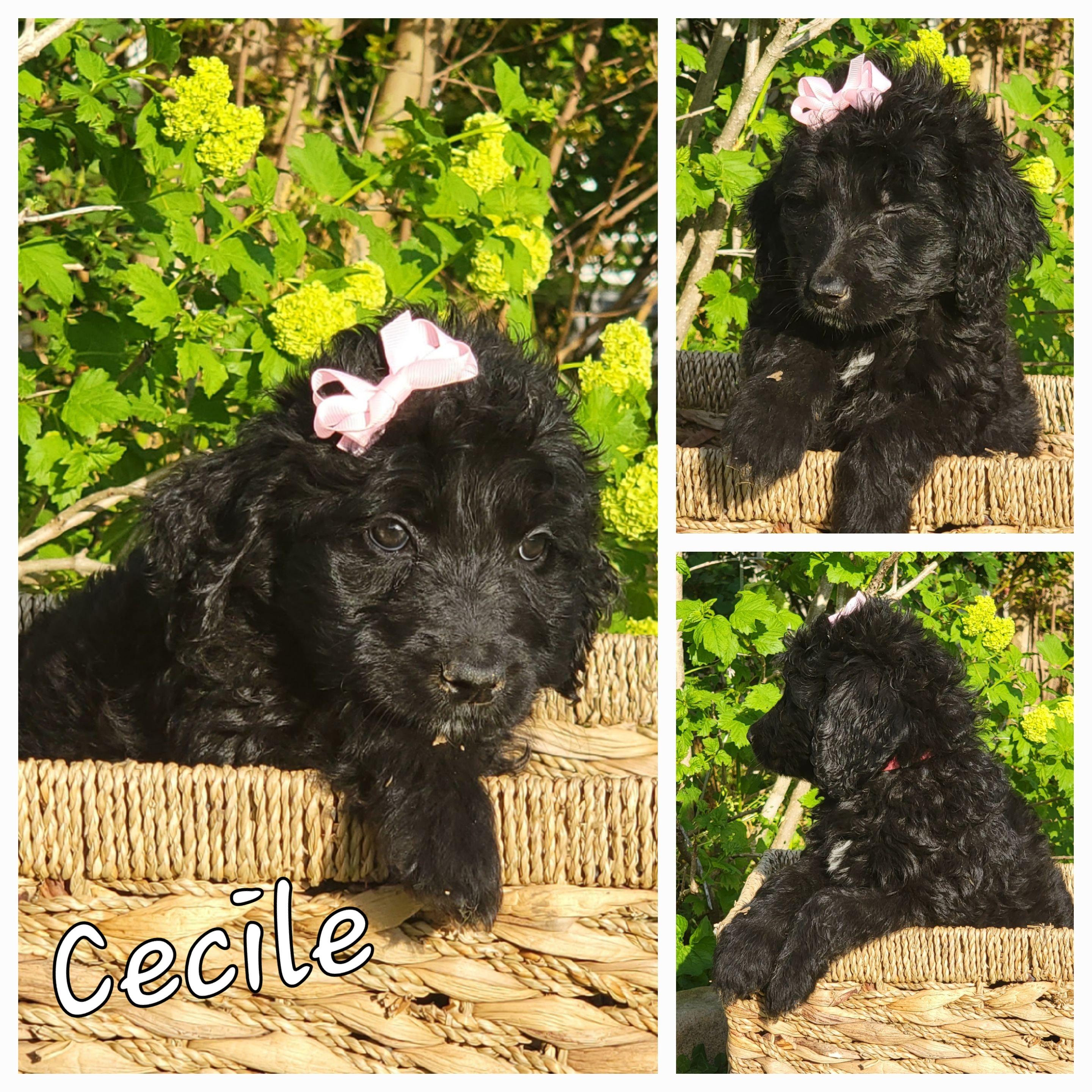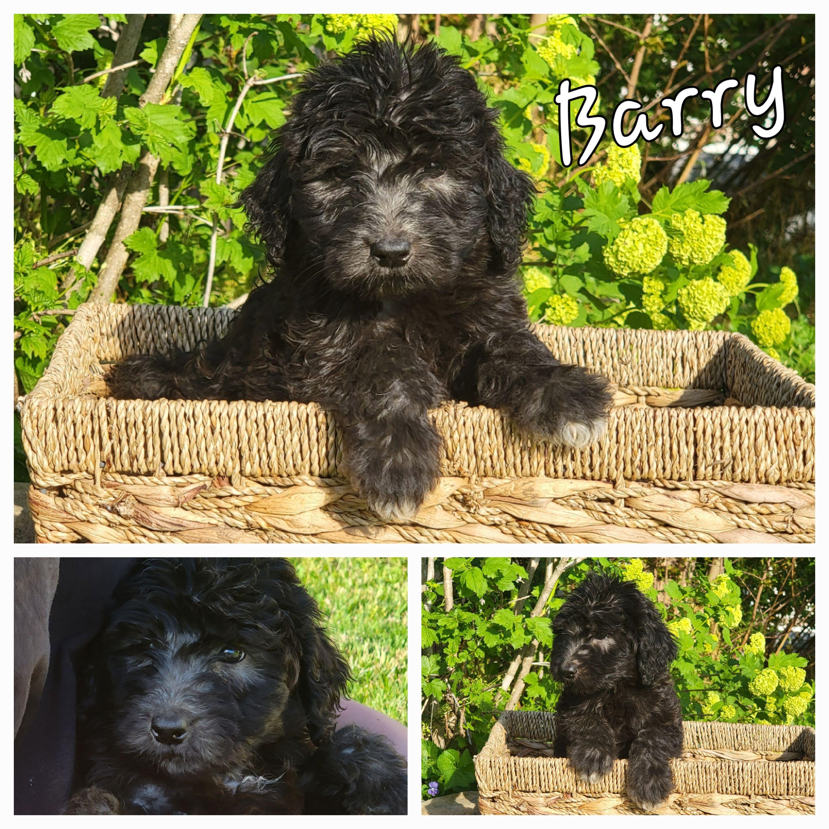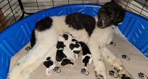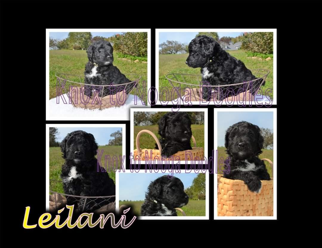 Poodle puppies include black, cream, and phantom. Aussiedoodle puppies include blue merle, red merle, and black and white. Colors will vary depending on the parent dogs.