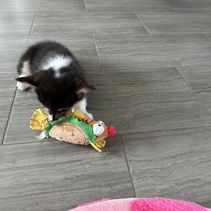 Luffy is the sweetest little, cuddly, love bug you'll ever meet. Stocky and small build. Carries fluffy.