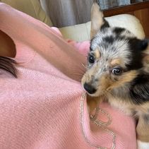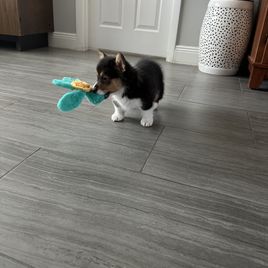 A friend recommended Koko to us because she has an Australian shepherd/corgi mix that she got from Koko. Our friend knew that our son wanted a corgi. They had one male American corgi left. He’s a fluffy corgi, which you don’t see as often. We decided to surprise our son with a corgi. We named him Lucky. He’s been teething quite a bit. He makes us laugh every day. We love our little American corgi.