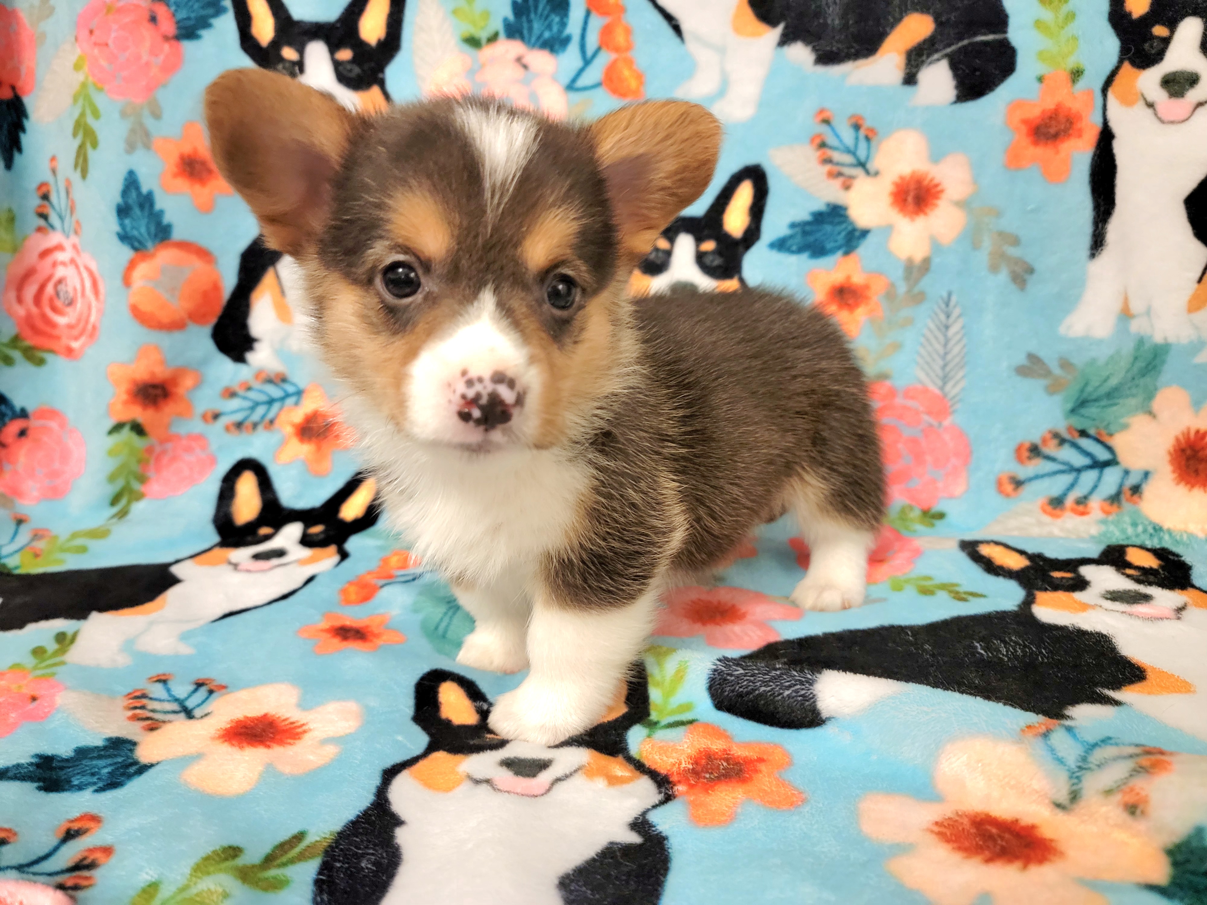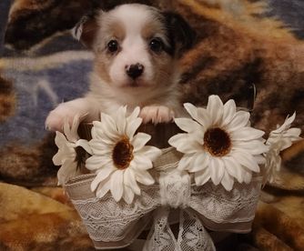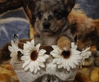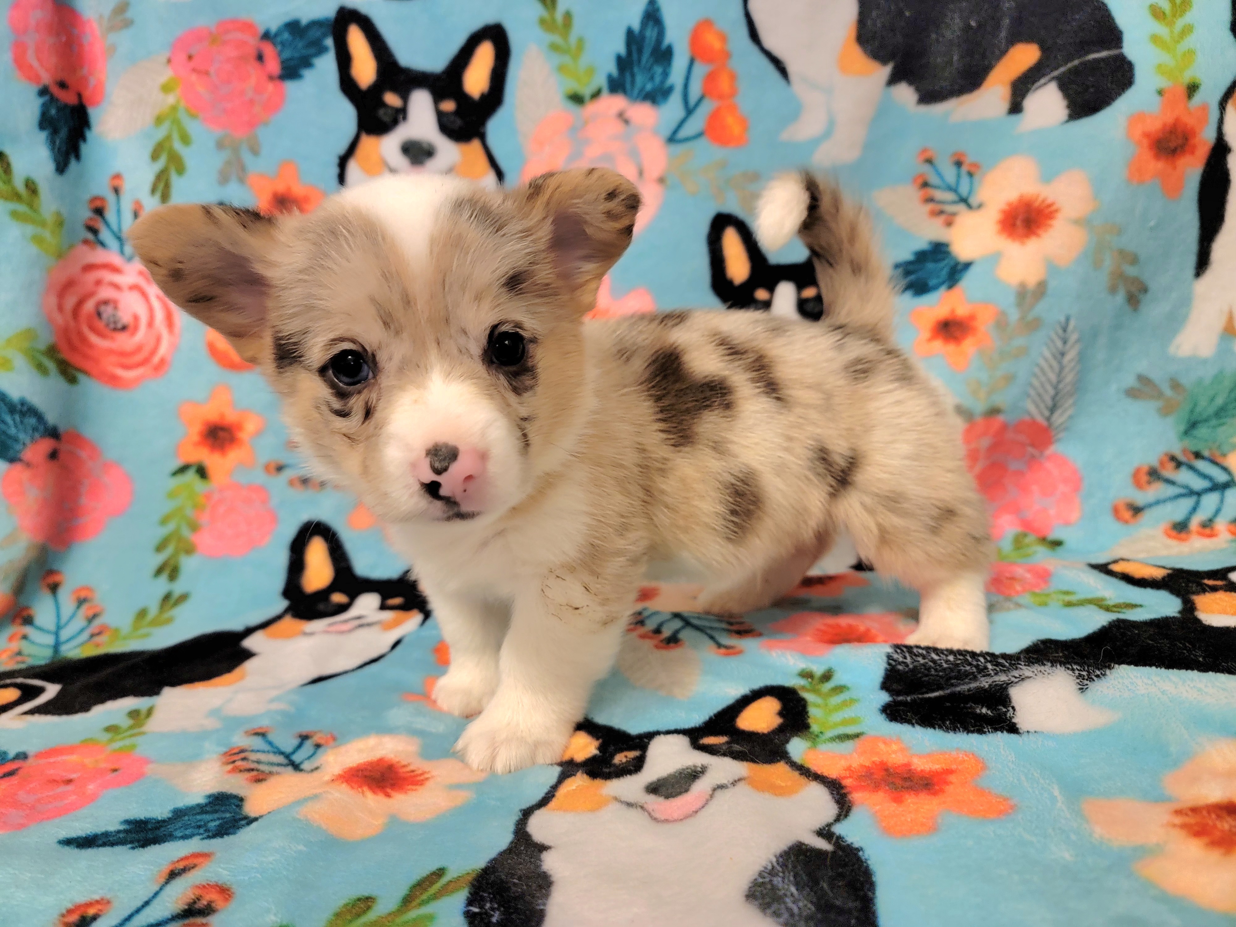 Our Pembroke Welsh Corgi puppies include red, sable, and black and tan. American Corgi puppies include fawn merle, red and white, red, red merle and white, sable merle and white, and blue merle and white. Colors will vary depending on the parent dogs.