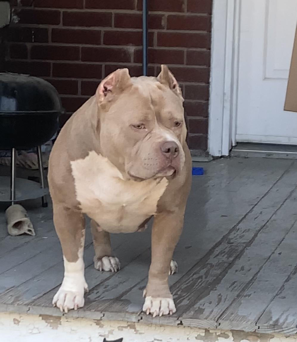 Raja is a female American Bully. Carefully selected as a great representative of her breed, Sterling decided to make her part of their program. Sterling has passed Good Dog’s screening process, which involved a review of their breeding practices, environment, and the mental and physical health of their dogs.