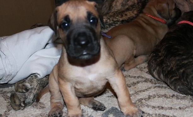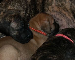 Our puppies include brindle and fawn. Colors will vary depending on the parent dogs.