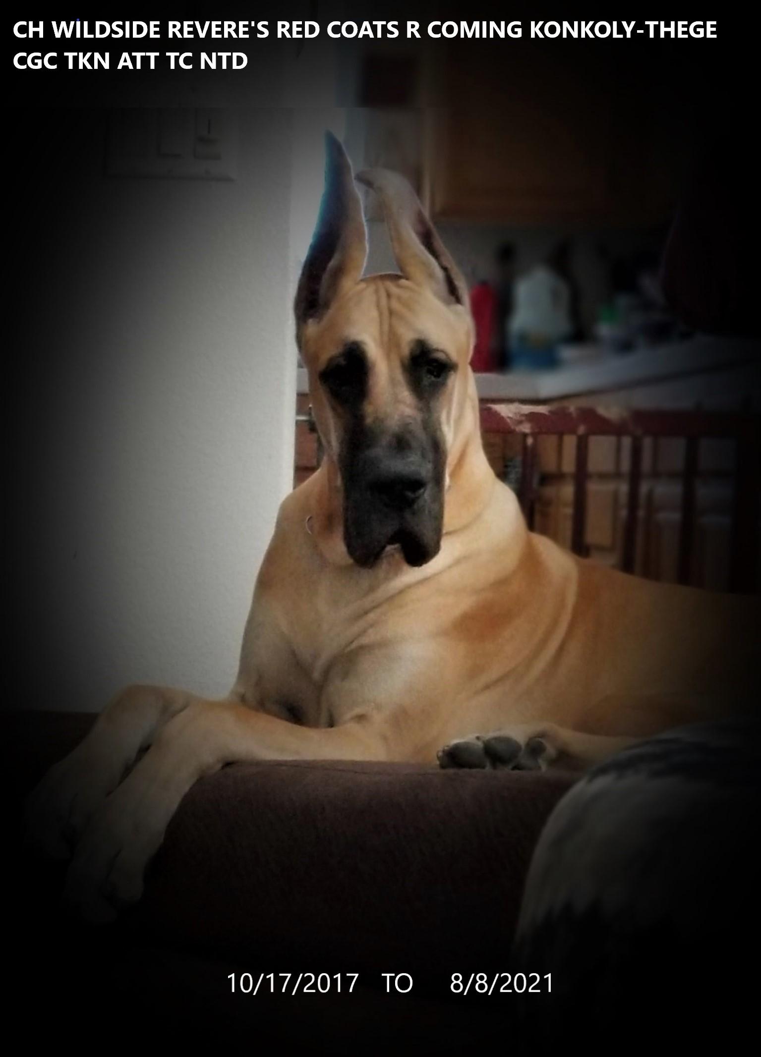Konkoly-Thege Danes reports to performing the health tests below on their breeding dogs. Ask your breeder about the tests performed on the parents of your litter. Learn more about health testing for Great Danes.
