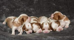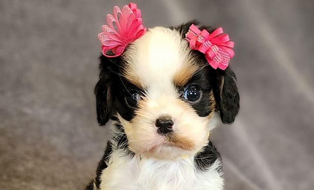 Our Cavalier King Charles Spaniel puppies include blenheim, ruby, tri-color, and black and tan. Japanese Chin puppies include sable and white, white and black, lemon and white, and black and white. Colors will vary depending on the parent dogs.