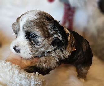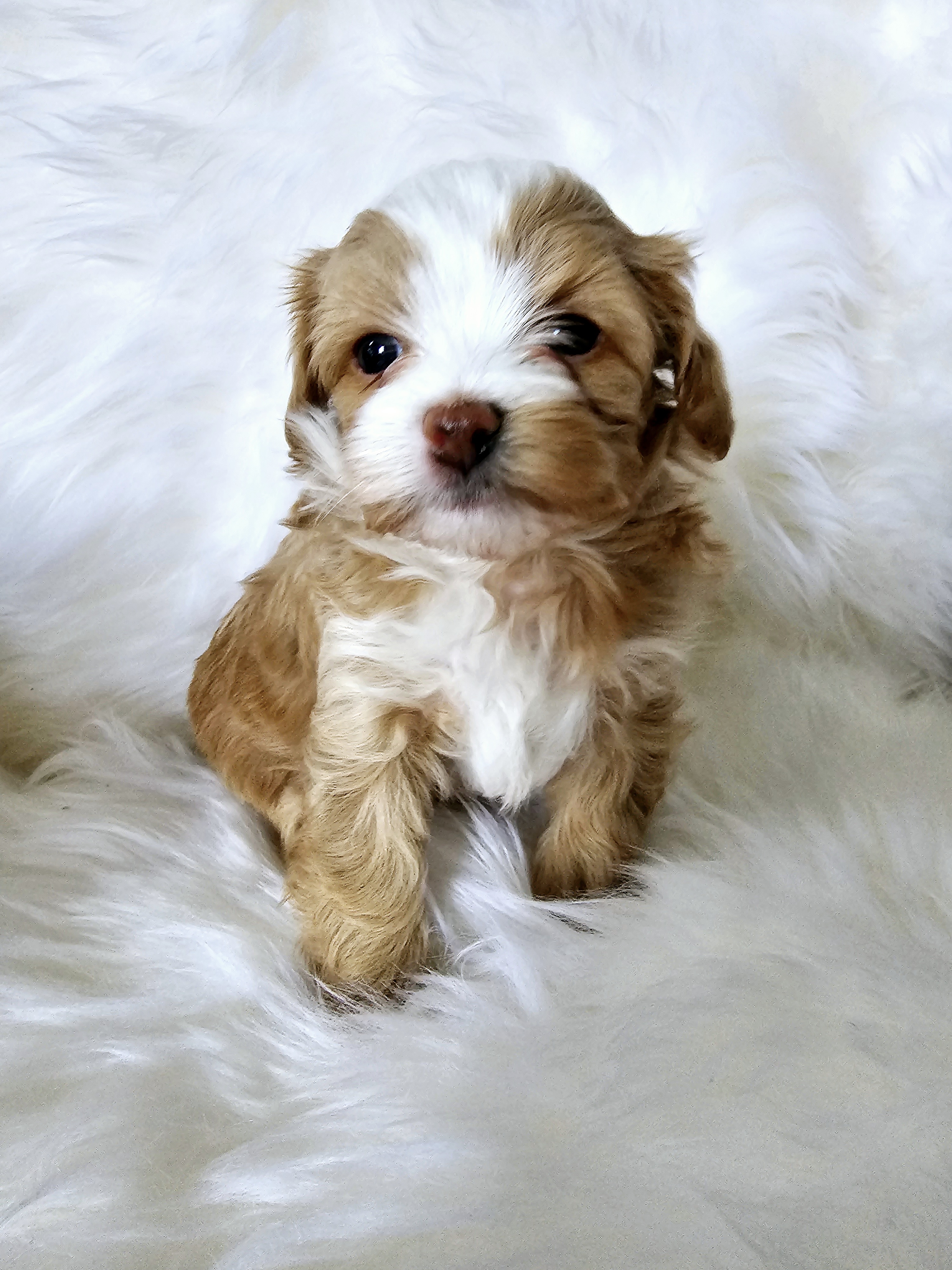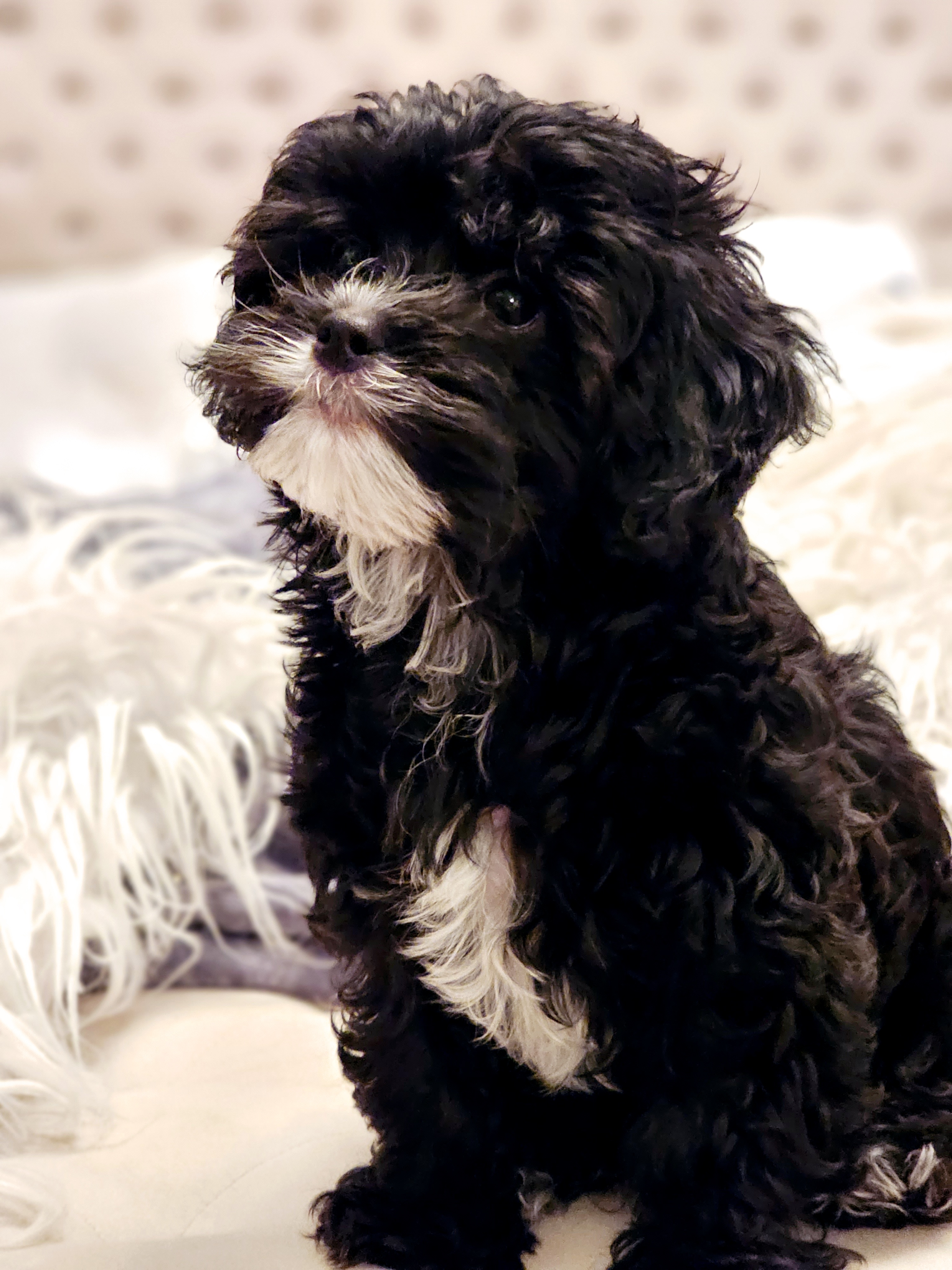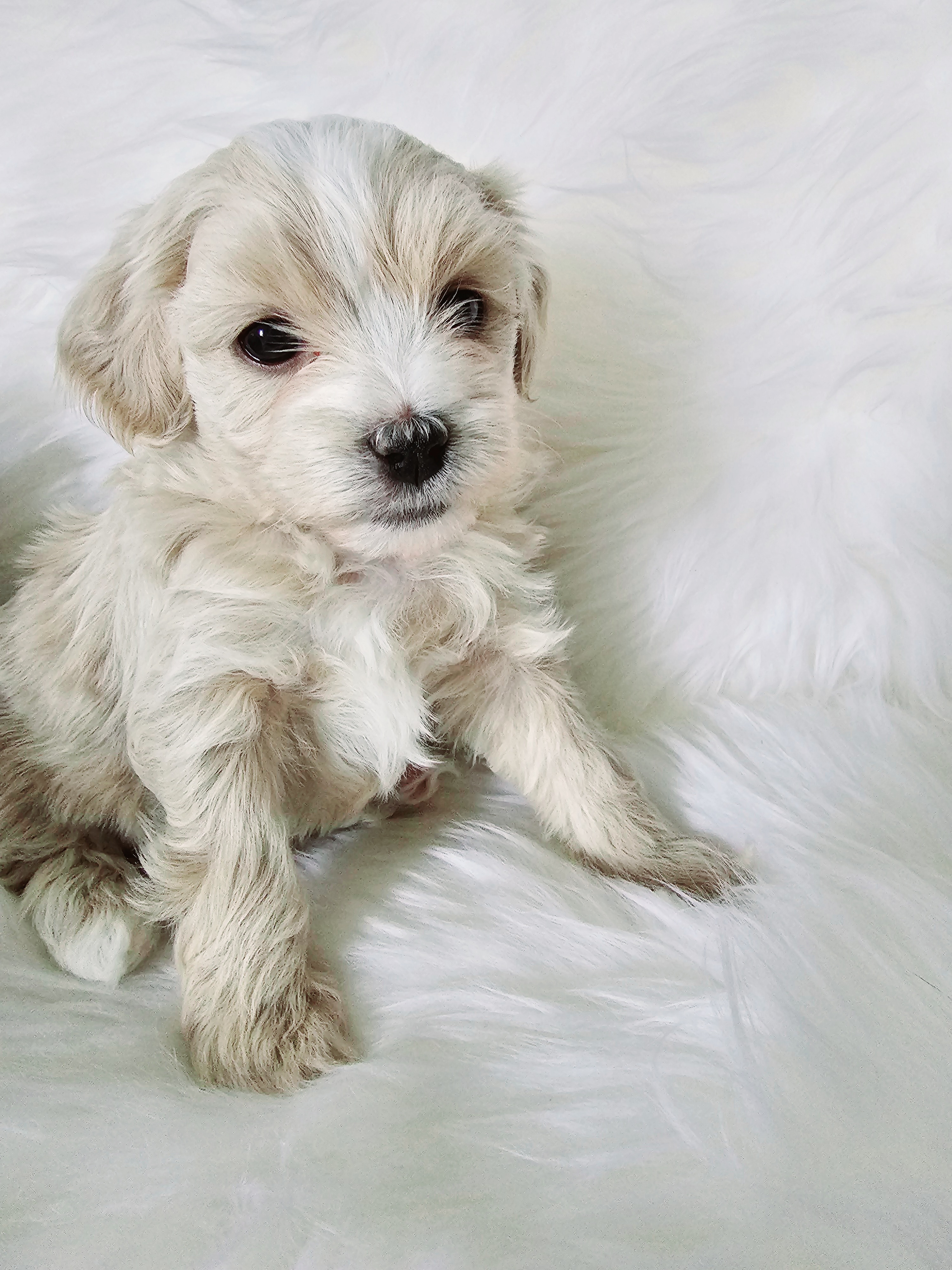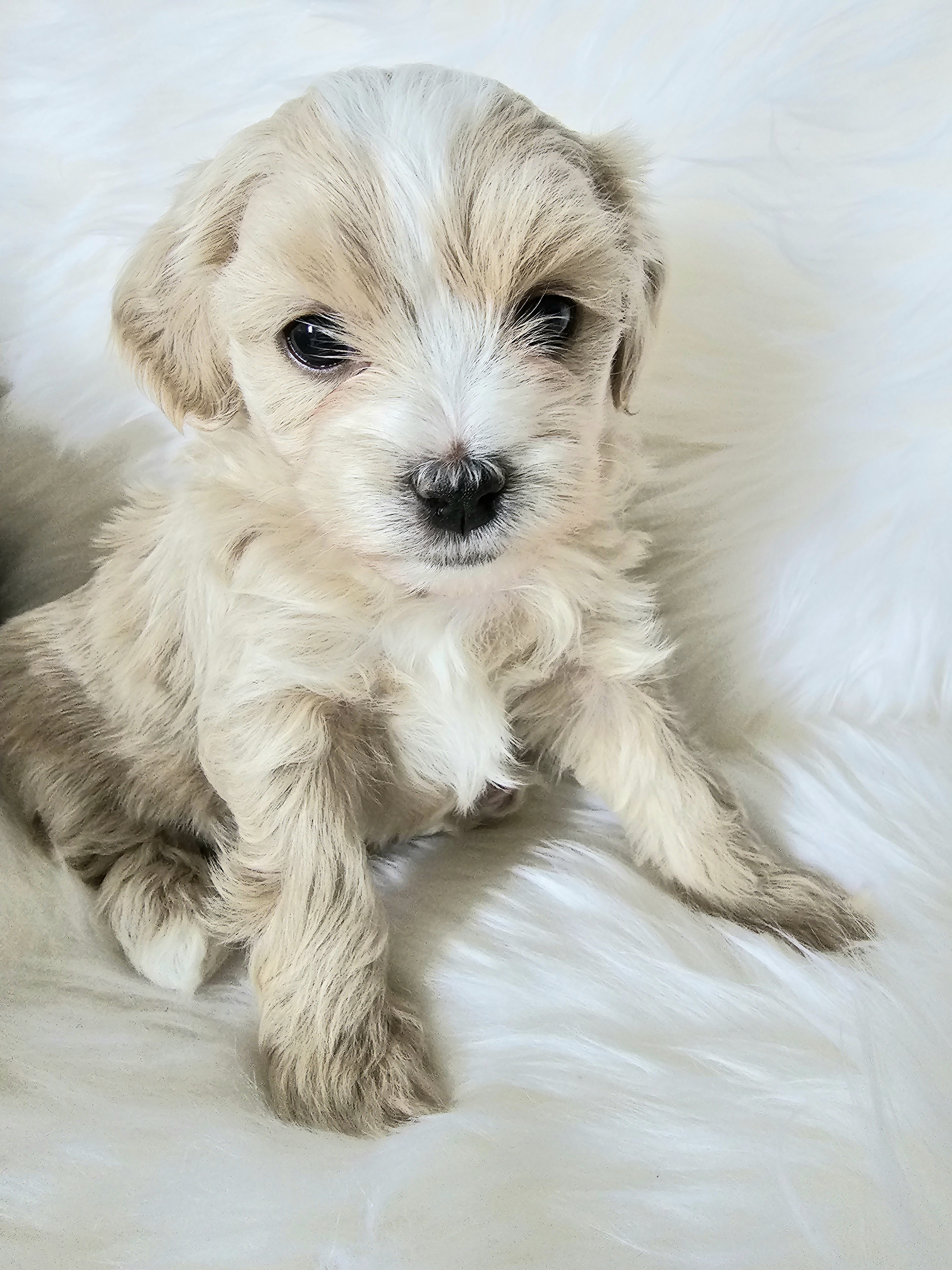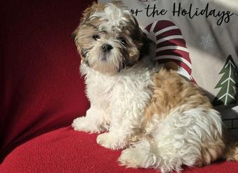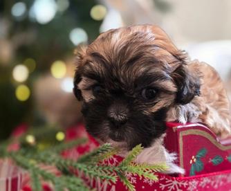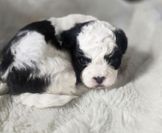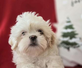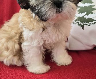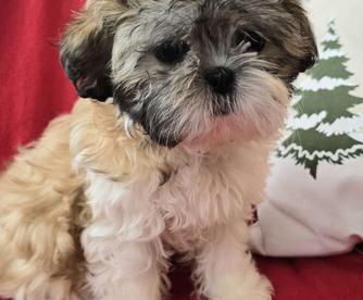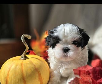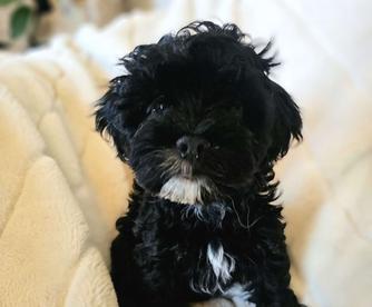 Our Shichon puppies include cream, black and white, and brown and white. Colors will vary depending on the parent dogs.