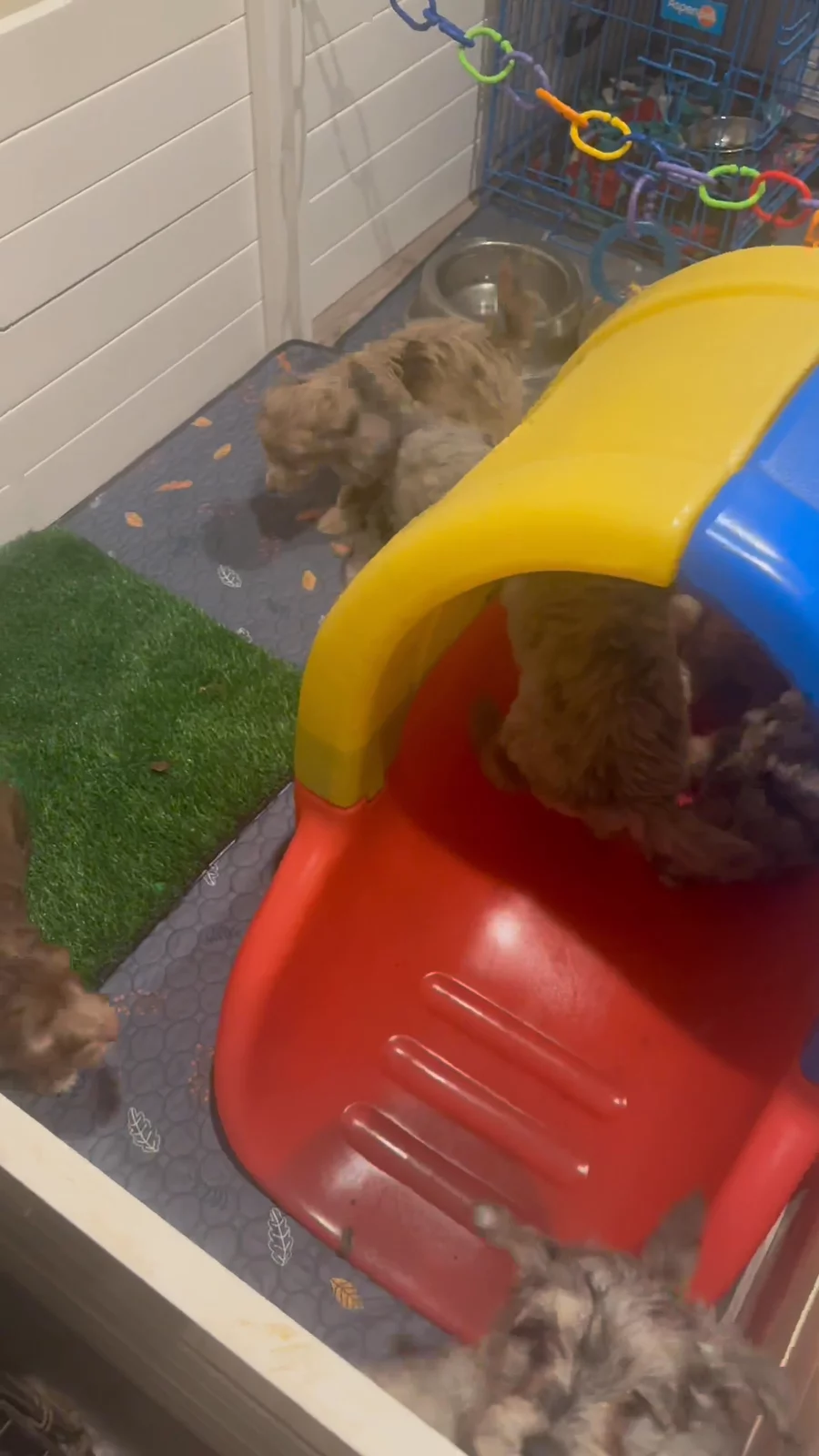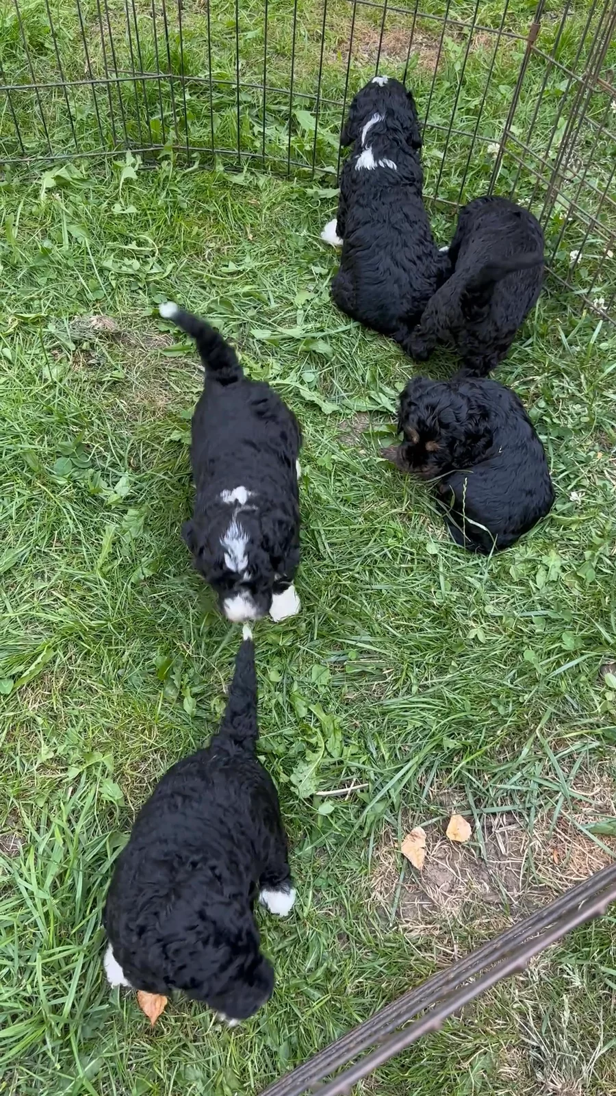 Our Goldendoodle puppies are medium size. Bordoodle puppies are mini size. Aussiedoodle puppies are mini size. Sizes will vary depending on the parent dogs.