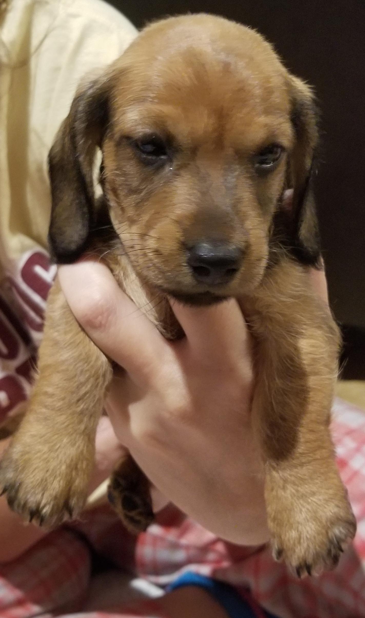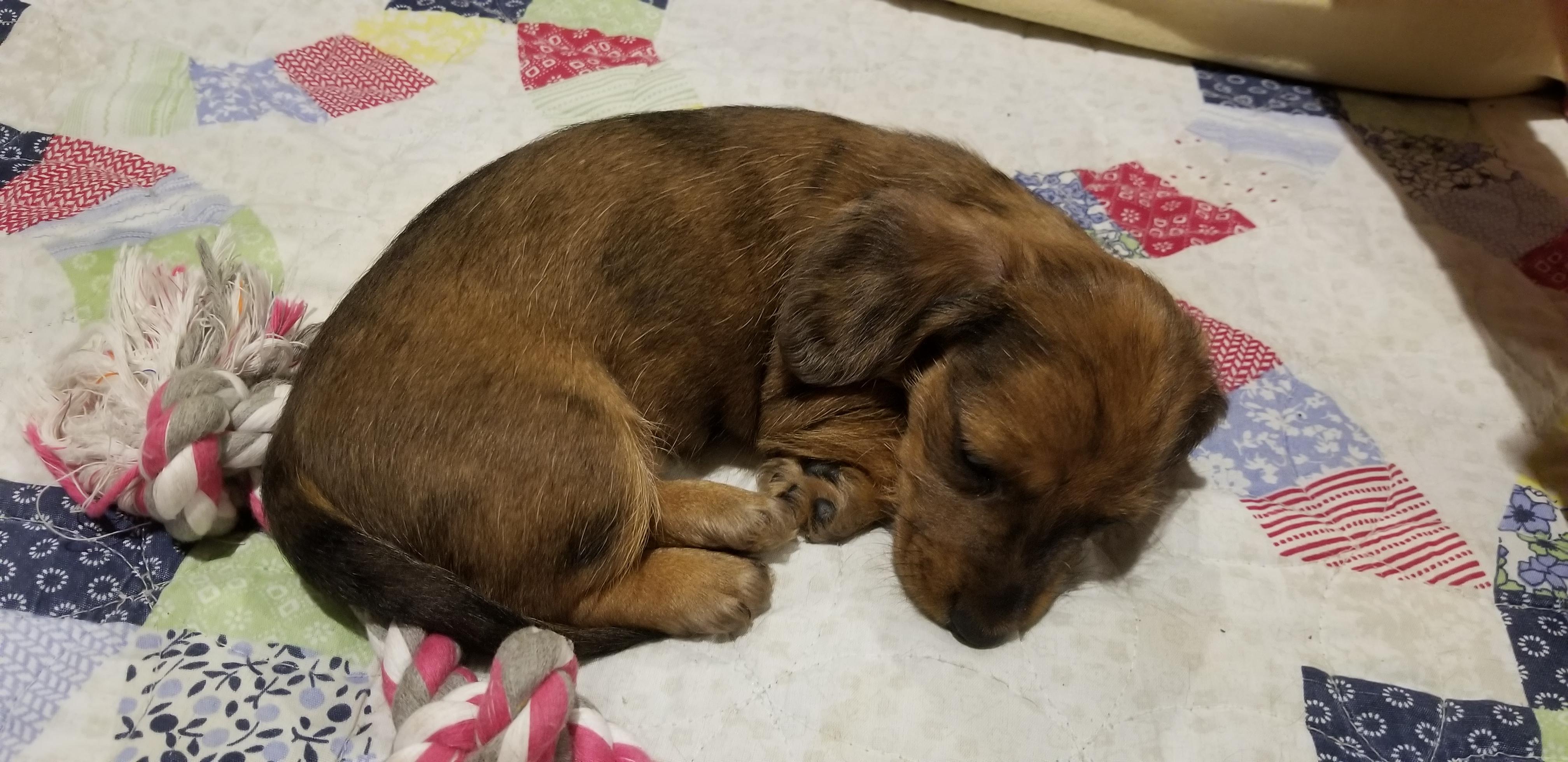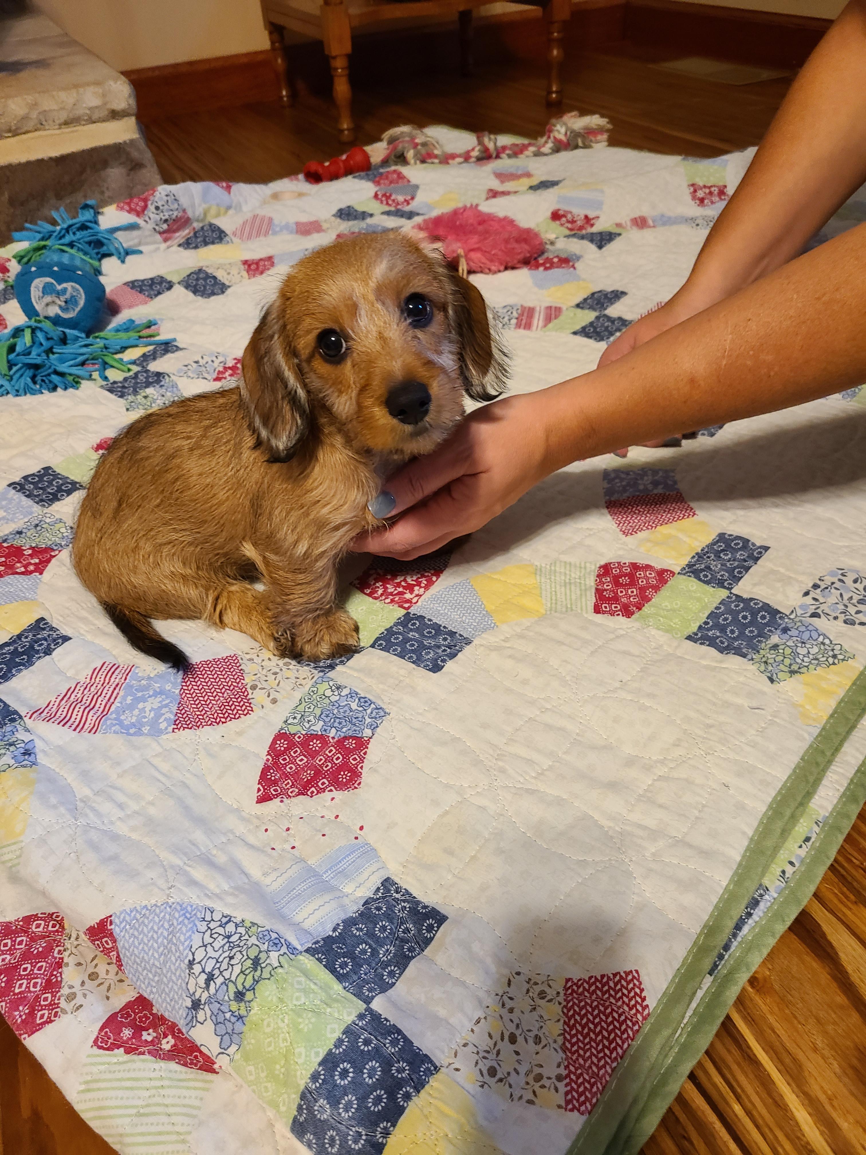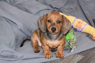 Maizey is a female Dachshund over 5 years old. Carefully selected as a great representative of her breed, Todd & Dawn decided to make her part of their program. Todd & Dawn has passed Good Dog’s screening process, which involved a review of their breeding practices, environment, and the mental and physical health of their dogs.