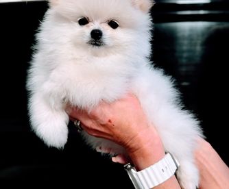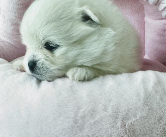 The wait is finally over! We are absolutely melting over here because our little cotton balls—our gorgeous white toy Pomeranian puppies—have reached that magical two-week milestone, and they are officially opening their eyes!