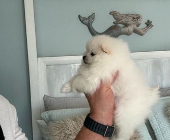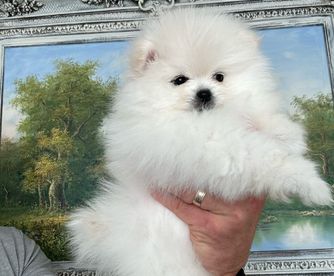 These two white Pom princesses 👑 are growing and becoming more beautiful every single day. Their fur is getting fluffier! ☁️ Our hearts are full! 🥰💖
