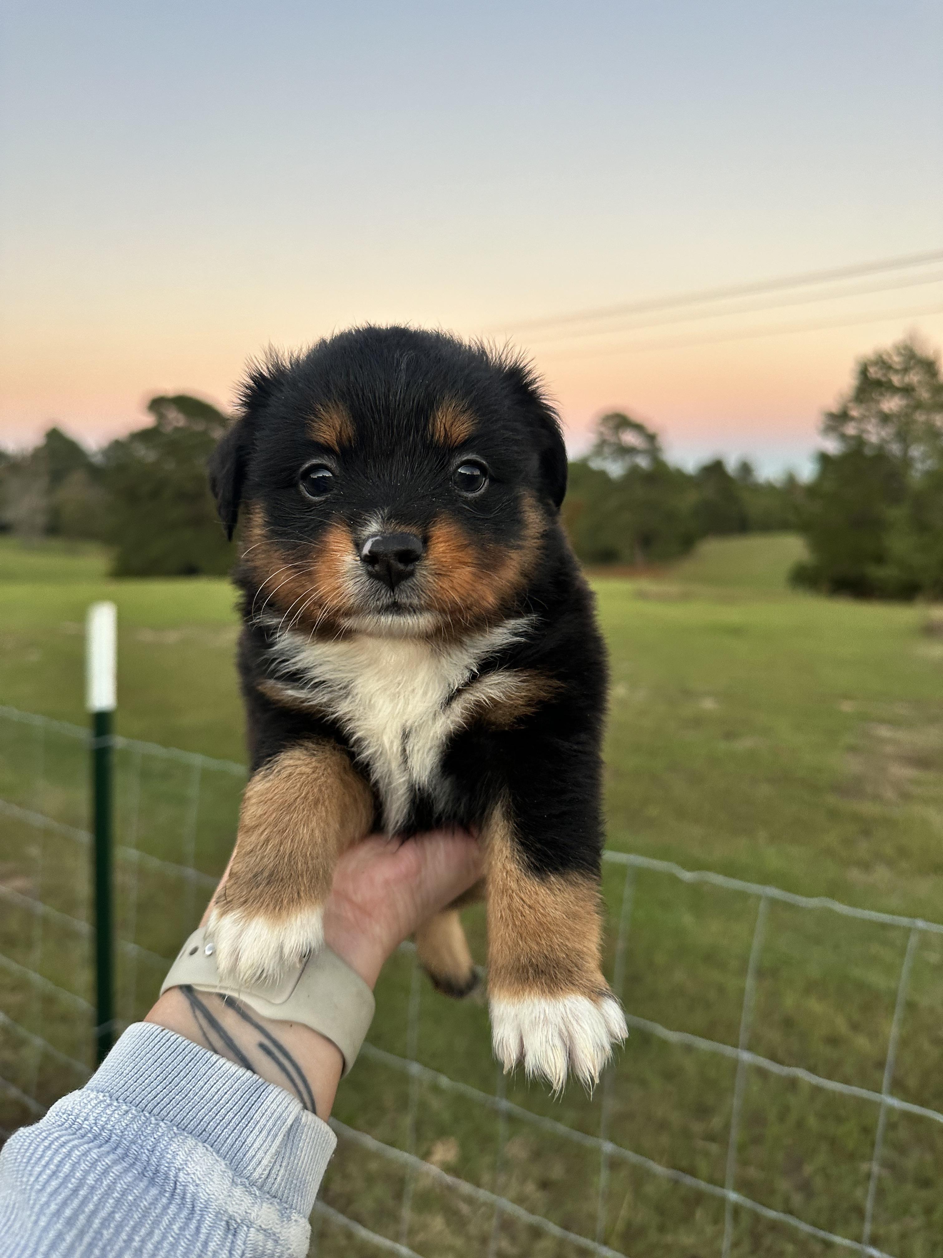 Hank boasts a stunning coat of rich black fur accented with striking copper and white markings. With bright, expressive eyes that sparkle with intelligence, he is always ready for adventure. Standing at about 15 inches tall, this compact canine is known for his playful personality and remarkable agility. Whether chasing after a ball, herding imaginary cows, or cuddling up for some quality downtime, Hank is as versatile as they come.