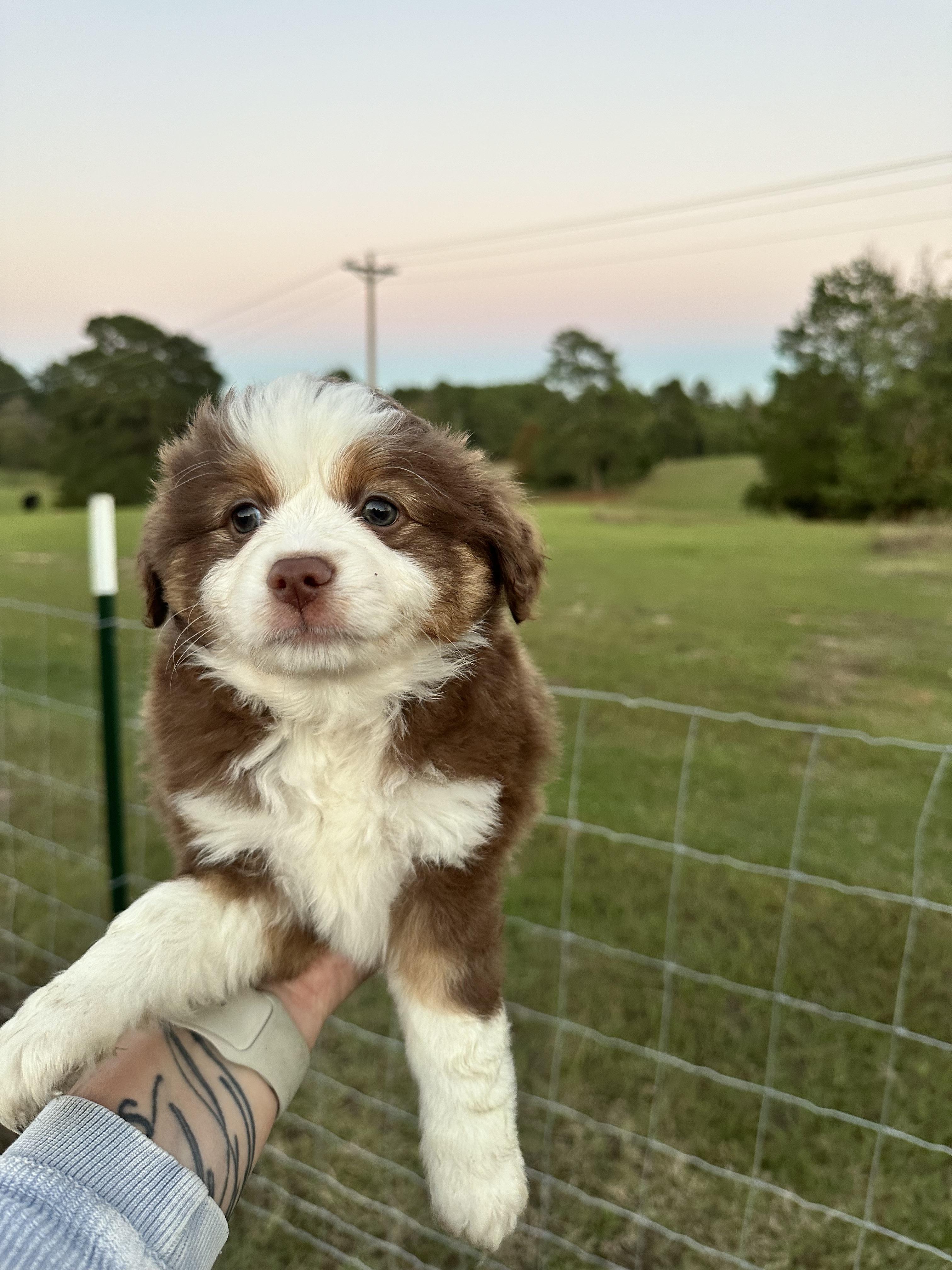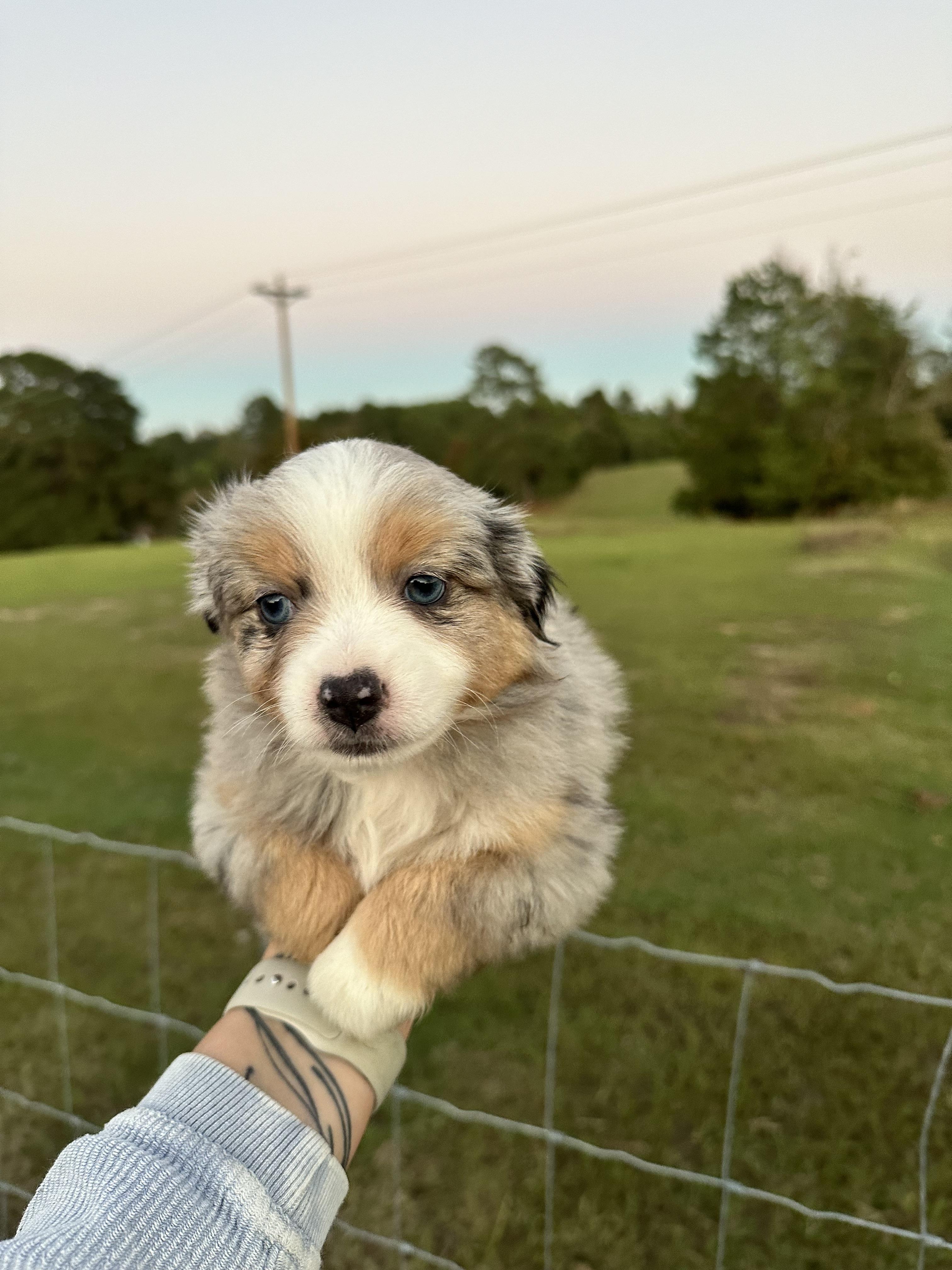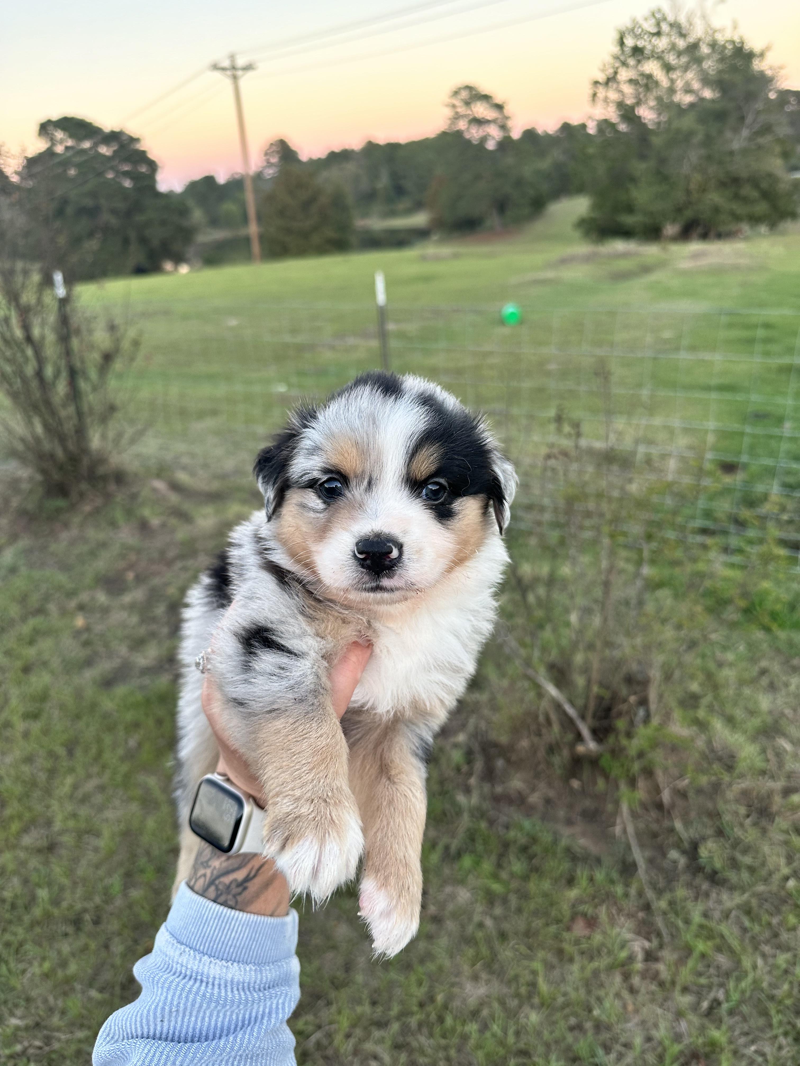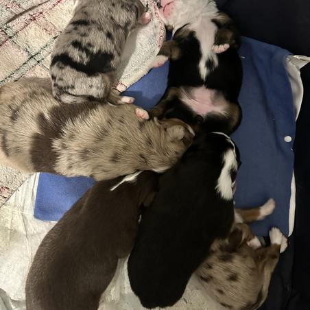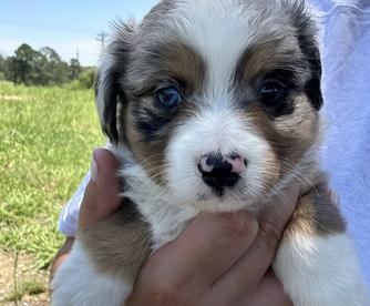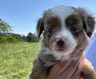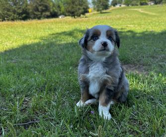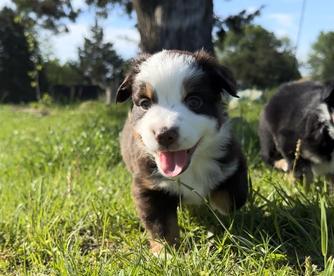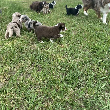 I'm Samantha F., the breeder behind Krazy Country Aussies located in Gilmer, TX. All of our pups are born inside of our home and are loved and interacted with from day one. They are socialized with children, cats, and livestock. All pups are wormed and vaccinated on a schedule and go home with a health register. We do remove dew claws and dock tails unless you request otherwise.