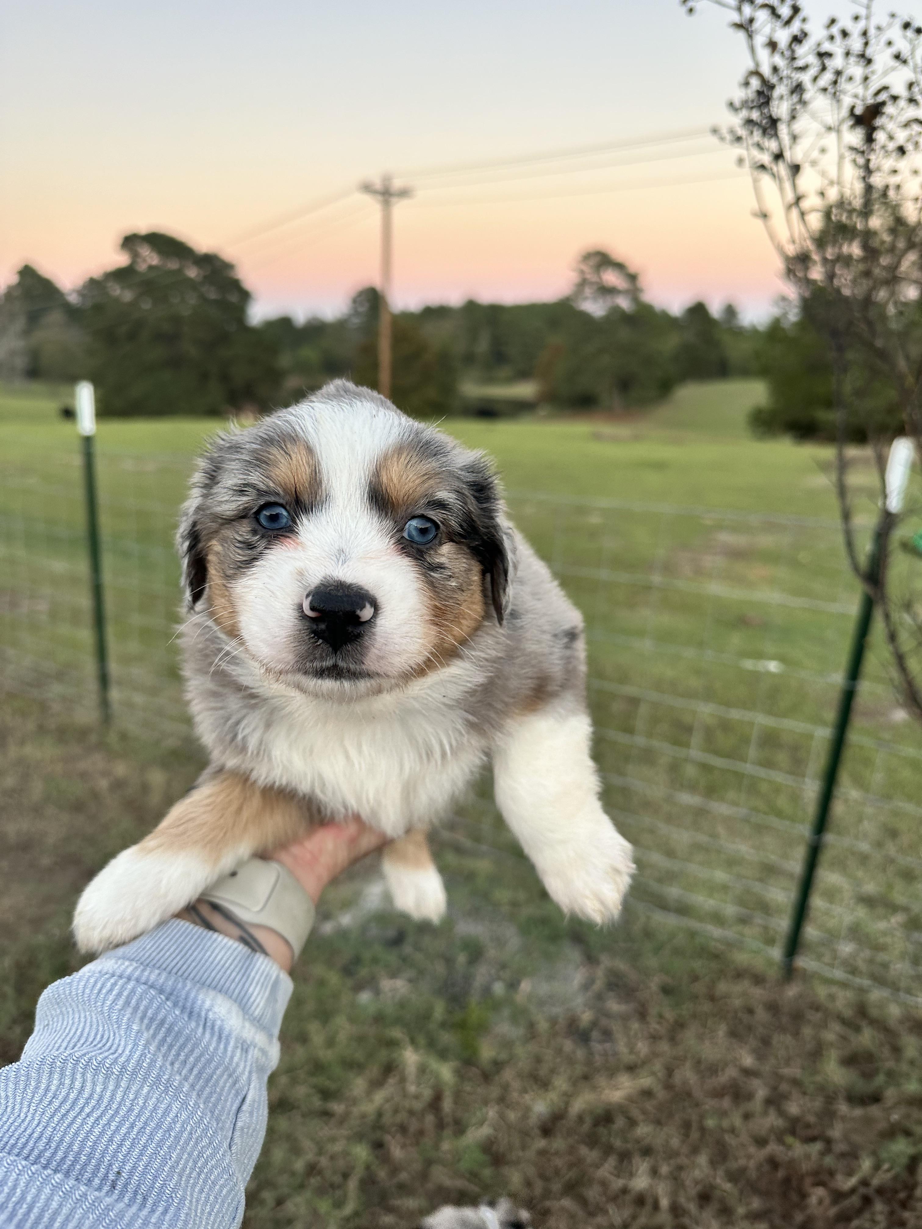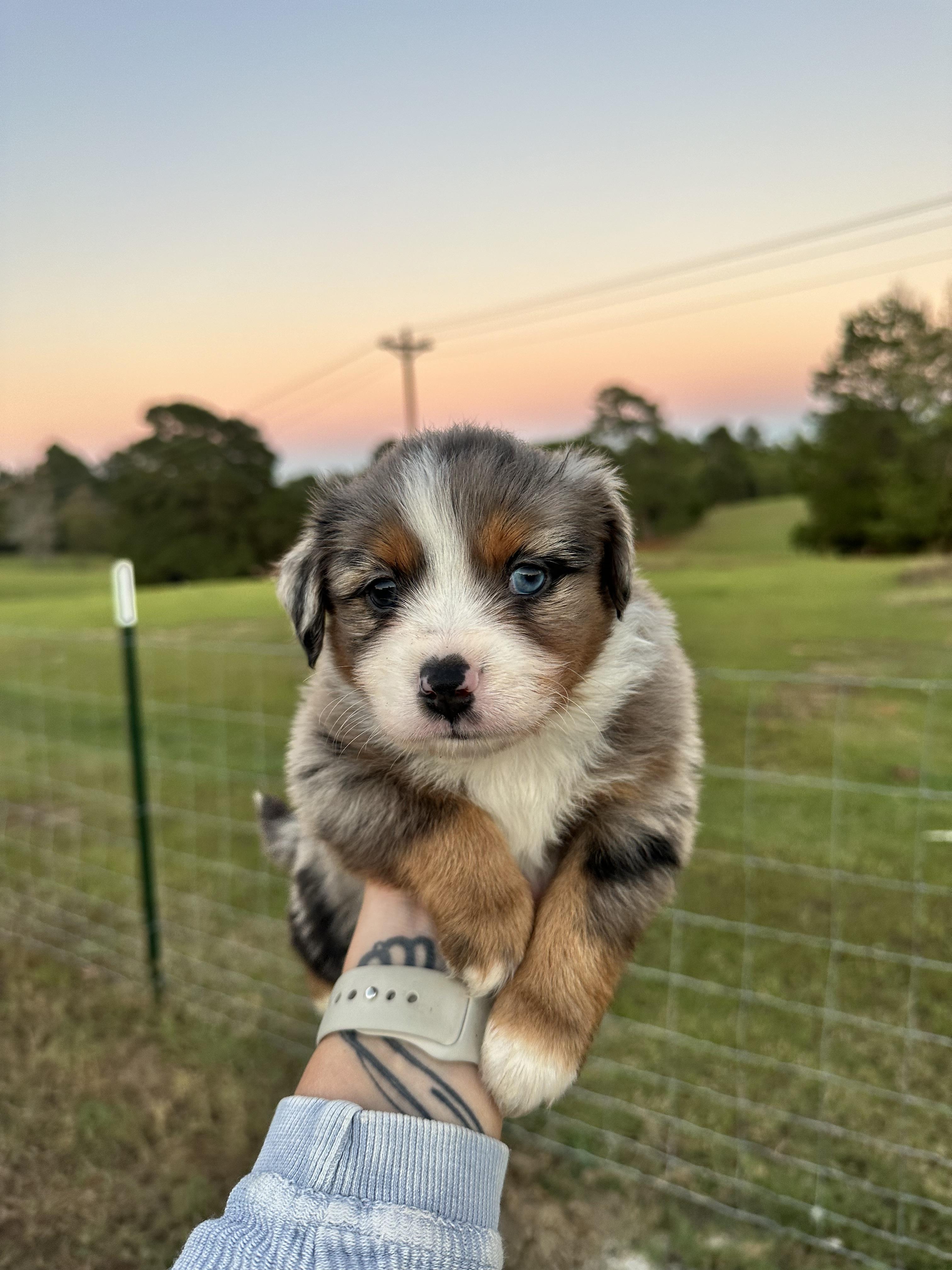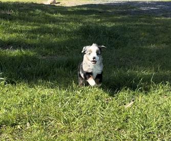 Wynonna is a blue merle Miniature Australian Shepherd with a vibrant bundle of energy who loves nothing more than a good splash! With their stunning coat of swirling grays and blacks, accented by striking blue eyes, this pup is as beautiful as they are spirited. A true water enthusiast, she leap into lakes, chase after waves, and dives into kiddie pools with pure delight. Always on the move, she thrives on adventure—whether it’s hiking, running, or playing fetch in the backyard. She is full of endless fun and is an active little companion who is sure to make every day an exciting new adventure!