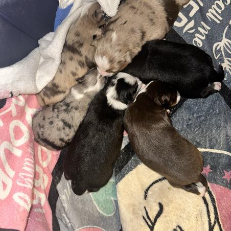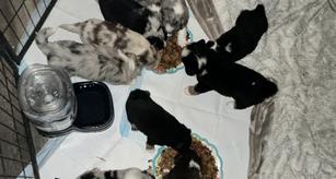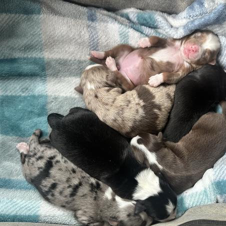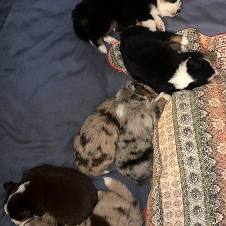 Our puppies include blue merle, red merle, red, and black. Colors will vary depending on the parent dogs.