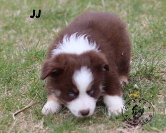 Our puppies include blue merle, black tri, red tri, and red merle. Colors will vary depending on the parent dogs.