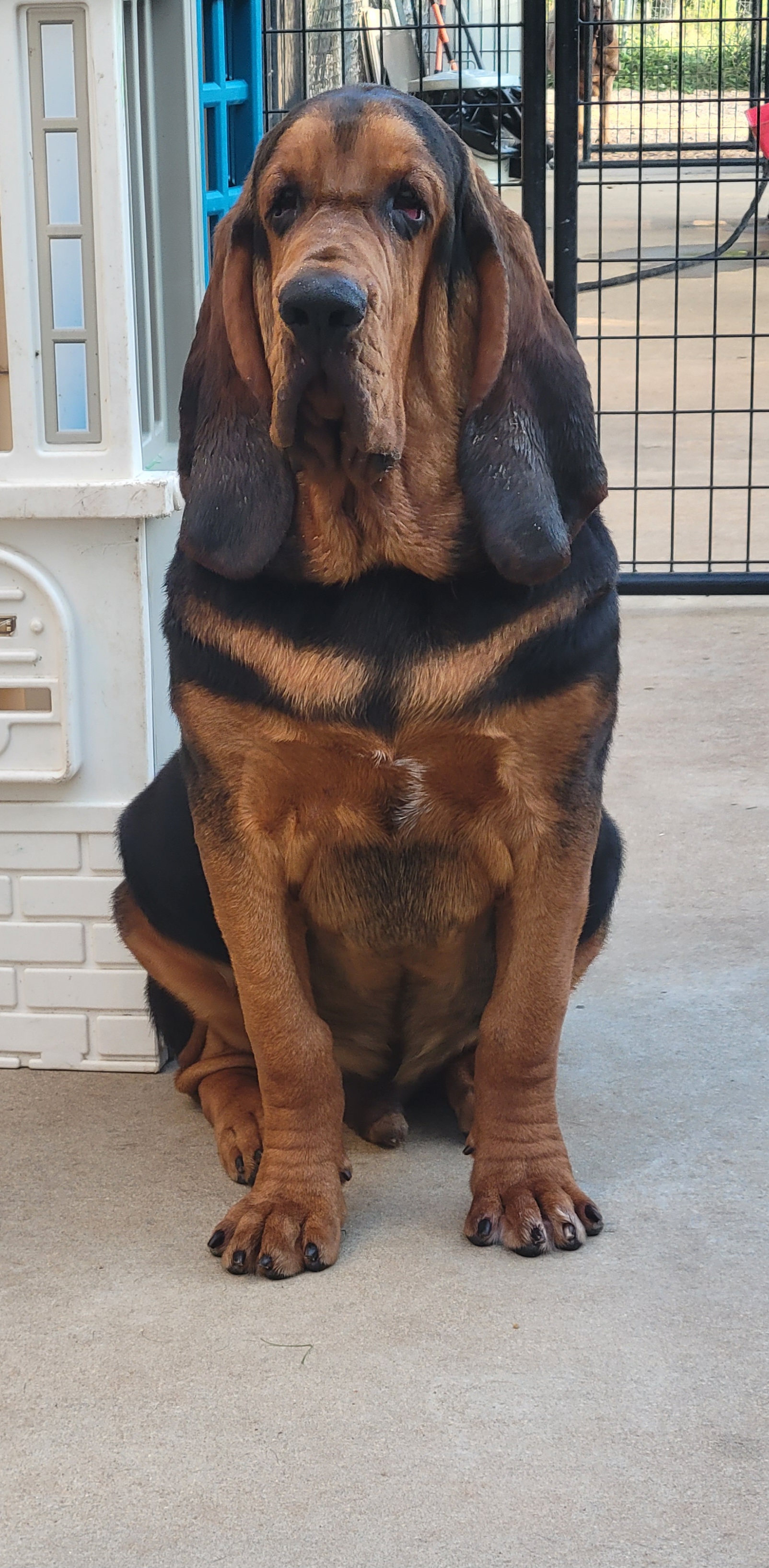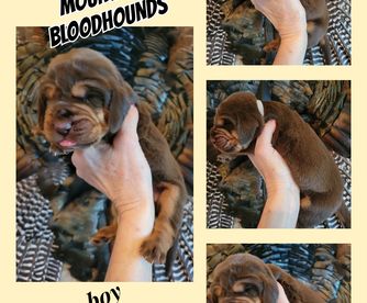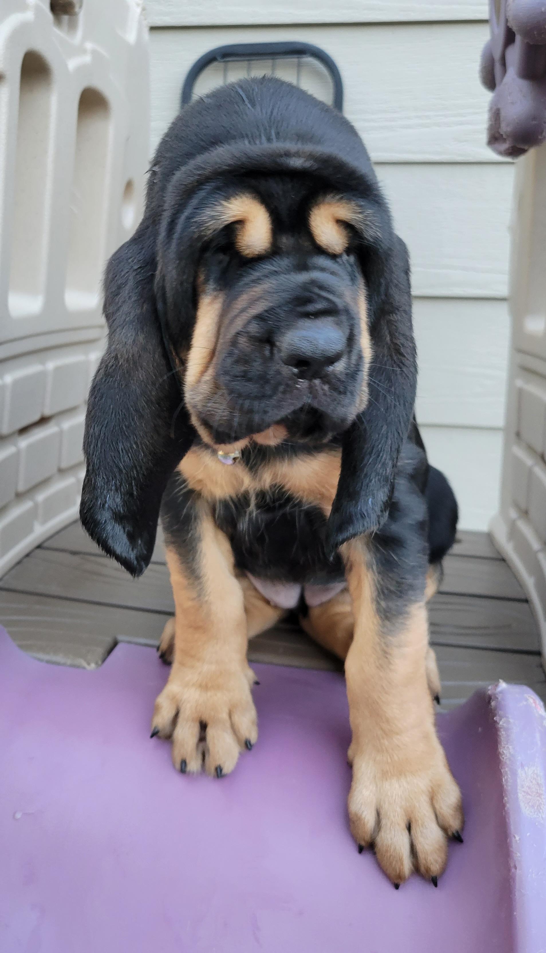 We are state and federally licensed. We screen all potential puppy parents as we want what's best for both. We whelp our litters right in our livingroom and puppies are handled by us from day one. I also help supplement the puppies as bloodhounds tend to have lrg litters. We use goats milk for all supplementing and in their mush up till 4 weeks old. We use the puppy culture as a guide. We work to begin potty box training around 3 weeks old and then at 6 weeks old puppies begin training to use the doggie door to their outside play area. We deworm every 2 weeks and give 1st vaccines at 6 weeks old. We microchip with the Nano microchips. We are here for the lifetime of your puppy and if life changes happen puppy will come back to us. We give a year health guarantee for anything genetic excluding eyes as eyes can be a huge issues with bloodhounds and also bloat. We feed high quality food to our puppies and adults snd momma receives daily vitamins during pregnancy and up to weaning. We work to certify our dogs with AMPWDA for SAR.