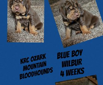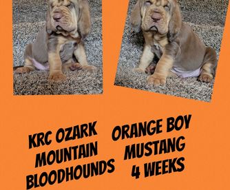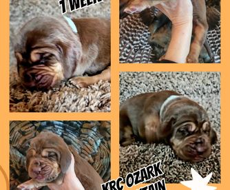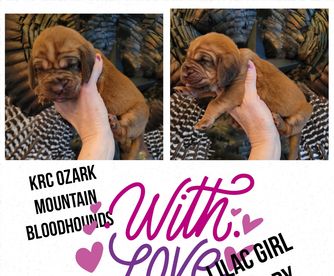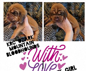 I'm Kevin and Renee C., the breeder behind KRC Ozark Mountain Bloodhounds located in Stone Hill, MO. We are a state and USDA licensed kennel in the state of Missouri. We are dedicated to producing and raising healthy, happy pups who will thrive in their forever homes. Our dogs have excellent bloodlines out of Better Hands Sargent Willie Wonka and Teoc. We have proven tracking lines and are certified SAR through AMPWDA. Several of our past pups work in law enforcement and some are certified for deer recovery. We health test to try to improve our lines. Bloodhounds have such wonderful personalities. They are loving, loyal, affectionate, and of course, adorable. We work so hard to make sure that each and every puppy is prepared to go to their new homes with confidence and to bring joy to their new families! We always recommend doing your research on the breed to make sure that a bloodhound is the right breed for you and your family.