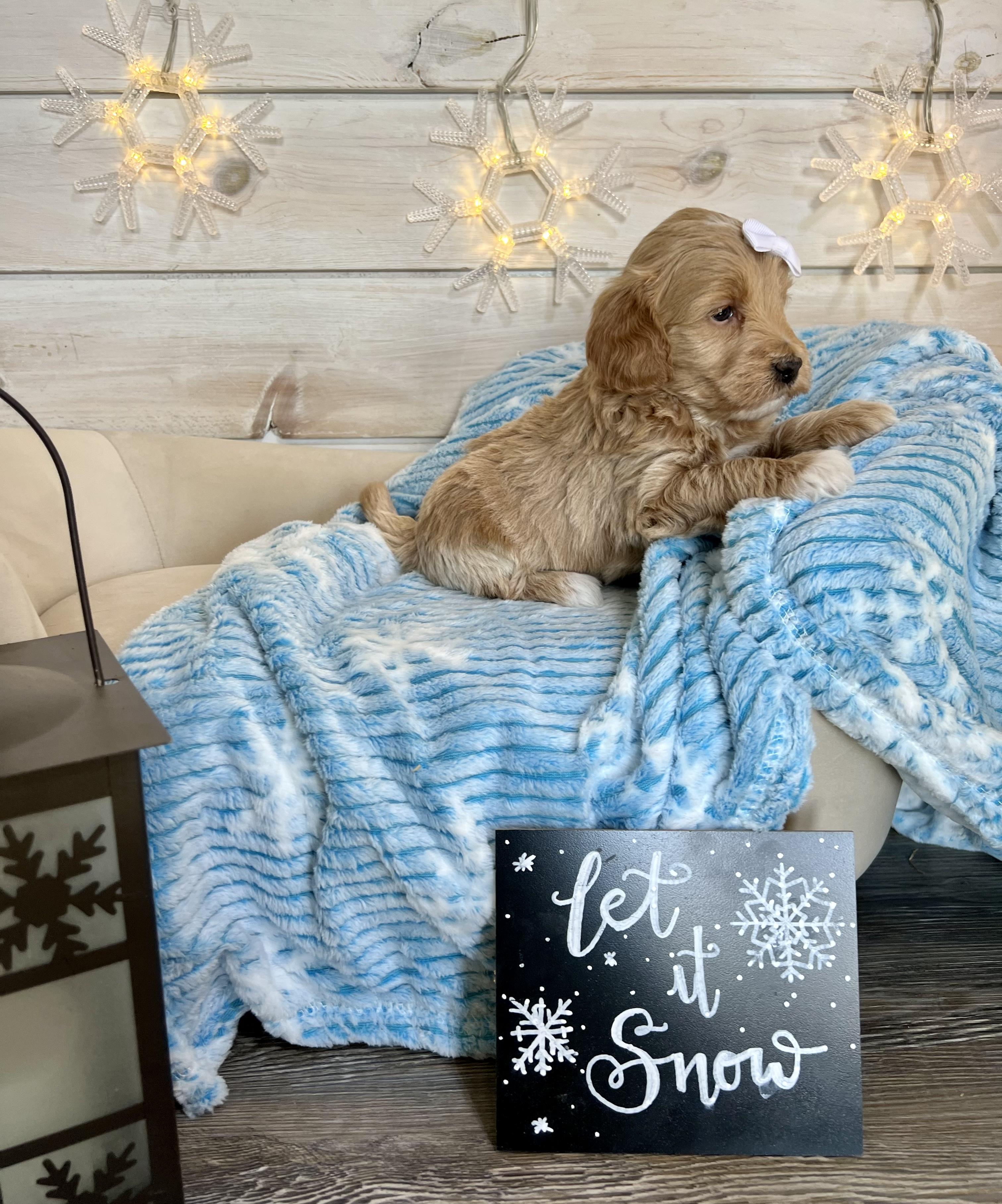 Our Goldendoodle puppies include cream, apricot, and red. Poodle puppies include apricot and red. Colors will vary depending on the parent dogs.