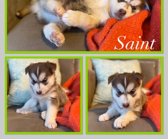 “Our husky pups are AKC registered for $1,500 pet rights. Our Pomskies are typically priced between $2,500-3,500 pet rights. I do allow breeding rights to approved homes only for an additional fee. Full deposit amount for a Husky is $250. Full deposit amount for a Pomsky is $500. Deposits are non-refundable but may be transferred once. Please message me for more details on my deposits and pick list.”