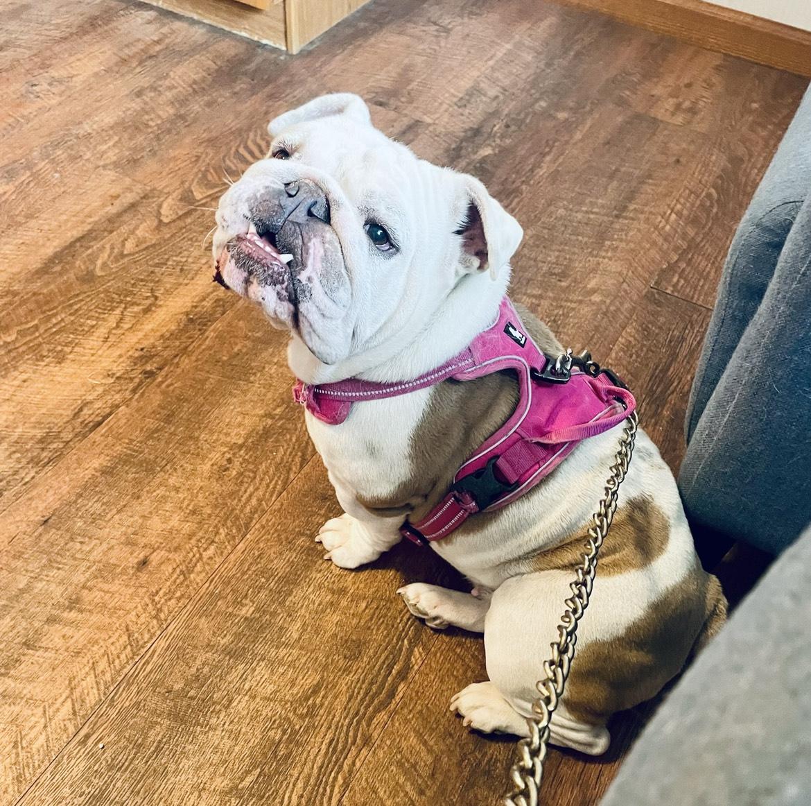Athena is a female Bulldog. Carefully selected as a great representative of her breed, Kristina decided to make her part of their program. Kristina has passed Good Dog’s screening process, which involved a review of their breeding practices, environment, and the mental and physical health of their dogs.