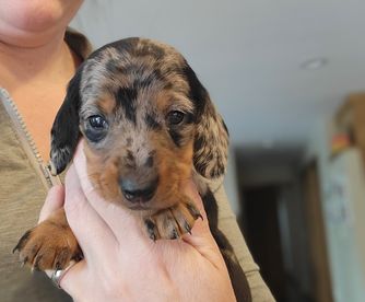 I'm Kristi S., the breeder behind Kristi's Doxies located in Goldendale, WA. We’re so excited to be able to help families experience the longtime loyalty of welcoming a new puppy into their lives! We are dedicated to always providing our buyers and our puppies with a positive experience, which includes remaining committed to responsible practices when it comes to breeding, training, and rehoming our puppies.