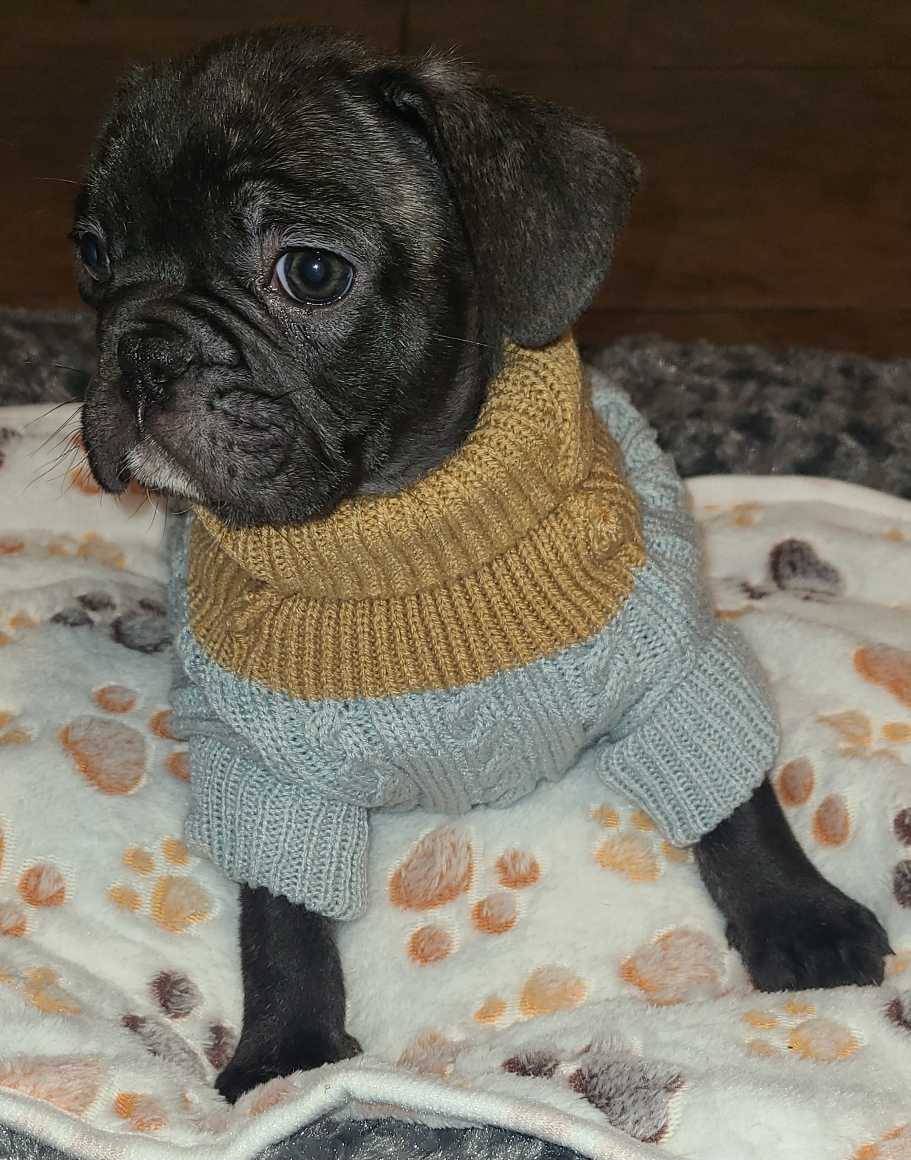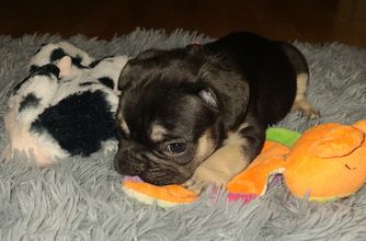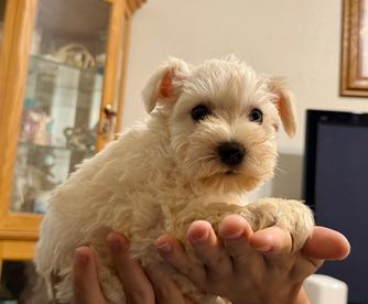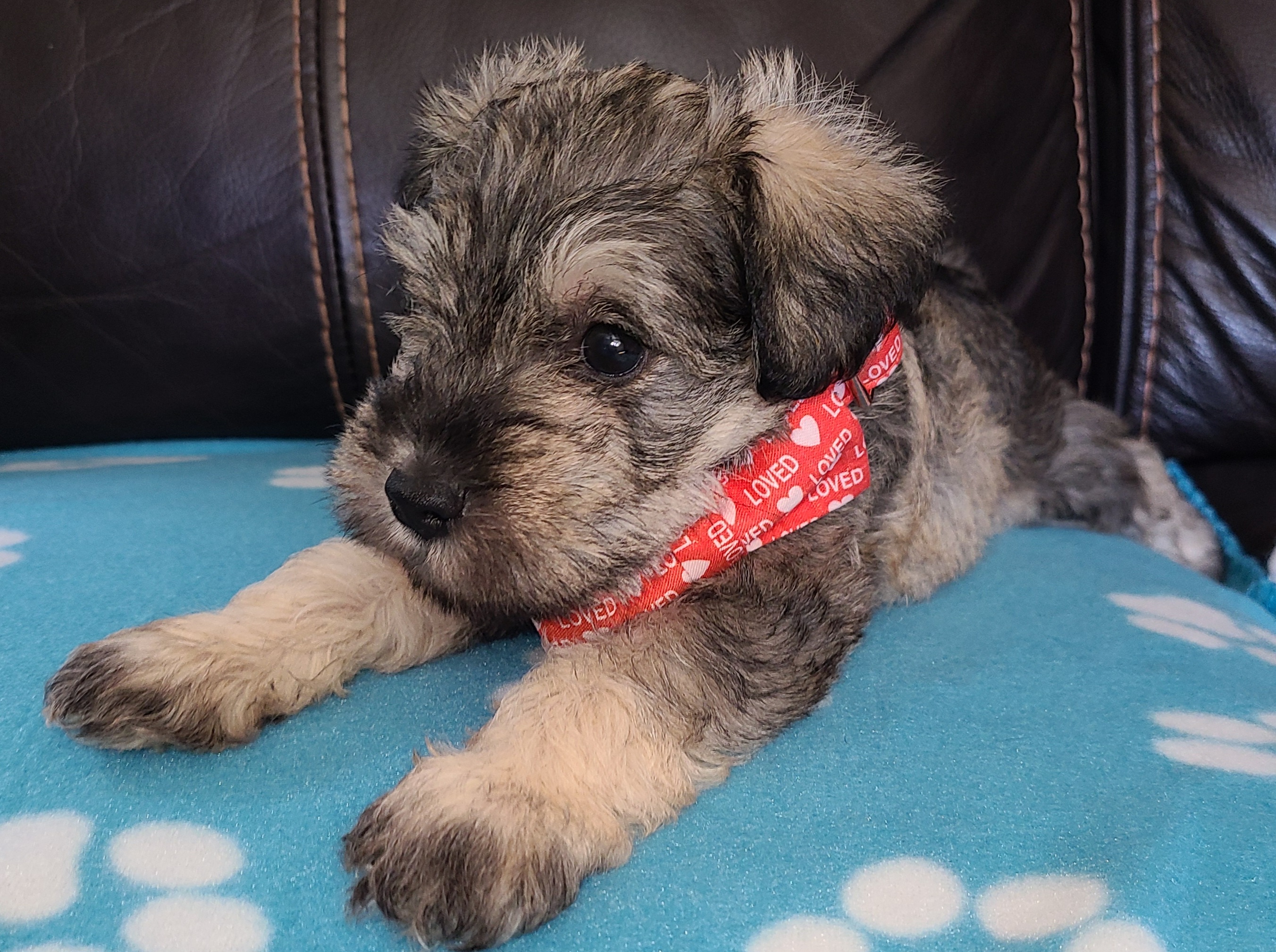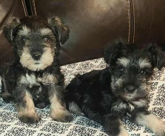 Our French Bulldog puppies include black and tan and black. Miniature Schnauzer puppies include wheaten, white, parti, liver, black and silver, black, and salt and pepper. Colors will vary depending on the parent dogs.