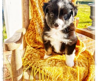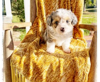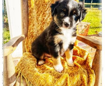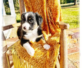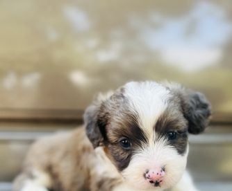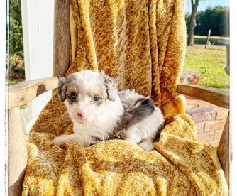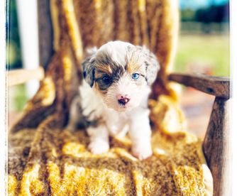 This adorable toy Australian Shepherd female is as sweet as pie. With her bright eyes and gentle personality, she loves to snuggle just as much as she loves to play. She’s small in size but big in heart—always eager to please, affectionate with everyone she meets, and the perfect little companion. Whether she’s curled up by your side or trotting happily at your feet, this girl is always a joy to have around.