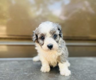 Our Miniature Australian Shepherd puppies include blue merle, black tri, red tri, and red merle. Aussiedoodle puppies include blue merle, red merle, and red tri-color. Colors will vary depending on the parent dogs.