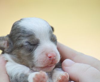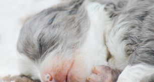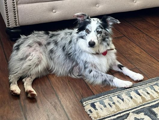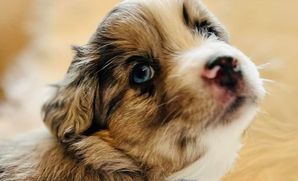 Delta is a beautiful blue merle Mini with a gentle, affectionate nature. She loves to be close and is happiest right at your side. As a mama, she is very attentive and nurturing with her puppies, patient and steady in every stage. Delta is calm, loving, and devoted — a wonderful girl with a sweet spirit and a warm, loyal temperament.