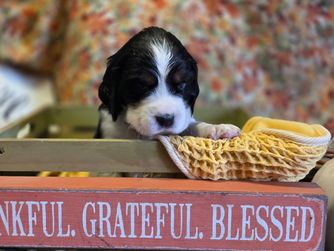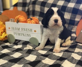 Our puppies include white and liver, liver white and tan, black and white, and black white and tan. Colors will vary depending on the parent dogs.