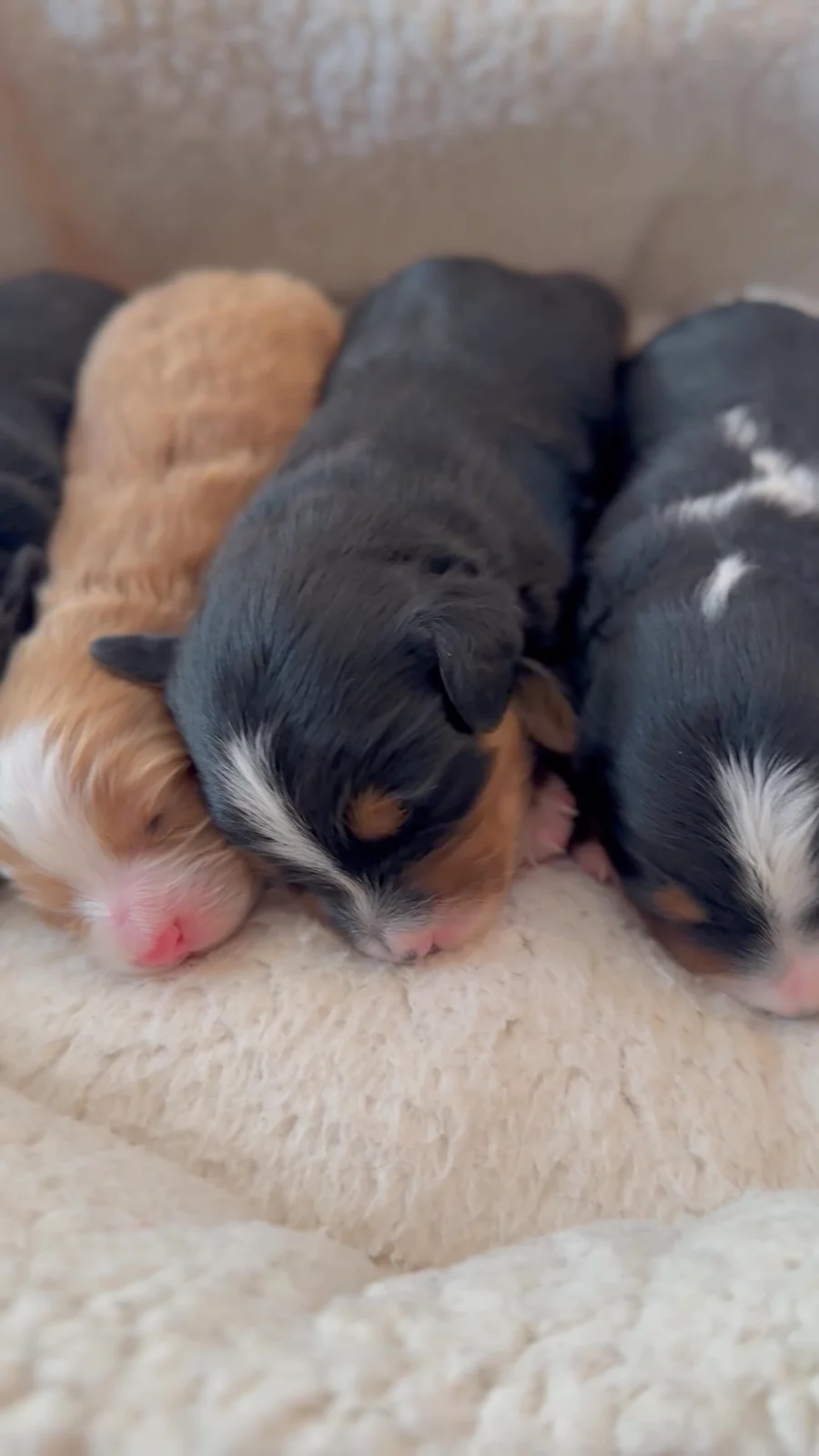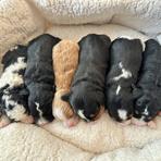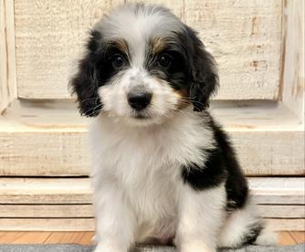 Our Bernedoodle puppies include red, black and white, tri-color, and phantom. Goldendoodle puppies include cream, apricot, and red. Havapoo puppies include silver, cream, chocolate sable, black and tan, black and silver, black, and apricot. Colors will vary depending on the parent dogs.