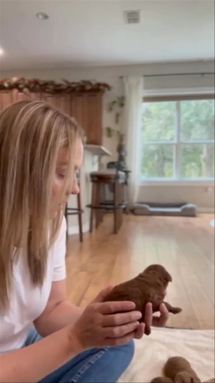 I'm Katie K., the breeder behind Kruger Doodles located in Brooksville, FL. Our puppies begin Early Neurological Stimulations at birth, are introduced to bathing and grooming at four weeks of age, and begin schedule feeding and outdoor potty training at five weeks of age. I assist future families before, during, and after transitioning their pup from my home to theirs.