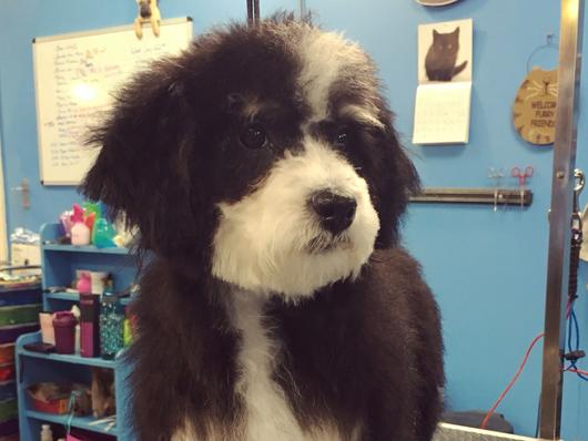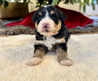 GiGi is our 35lb, F1 Mini Bernedoodle.