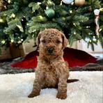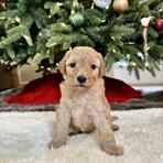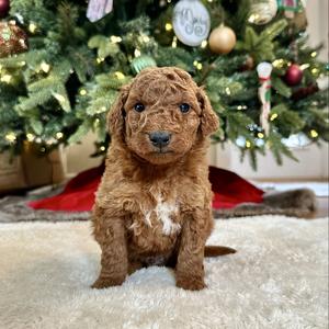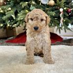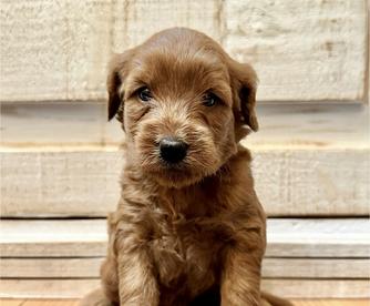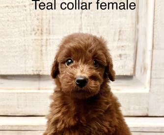 Mako weighs 18lbs, has a furnished wavy coat, and is super sweet. Her gentle mannerisms follow through to her puppies.