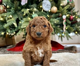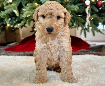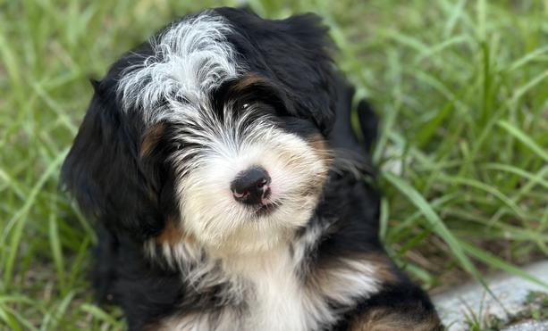 Our Bernedoodle puppies include mini and medium sizes. Goldendoodle puppies include petite and miniature sizes. Sizes will vary depending on the parent dogs.