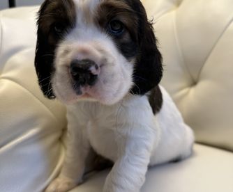 Our puppies include liver white and tan and black white and tan. Colors will vary depending on the parent dogs.