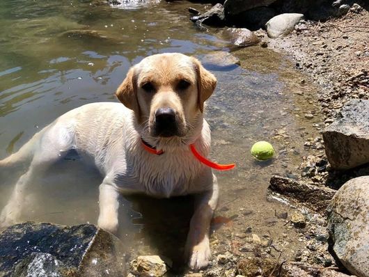 Rocky is a female Labrador Retriever. Carefully selected as a great representative of her breed, Katie decided to make her part of their program. Katie has passed Good Dog’s screening process, which involved a review of their breeding practices, environment, and the mental and physical health of their dogs.