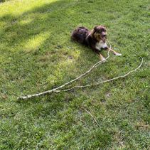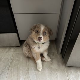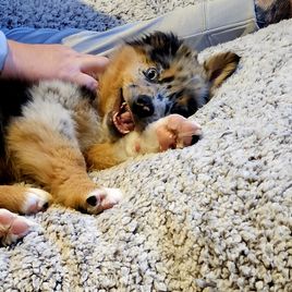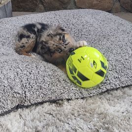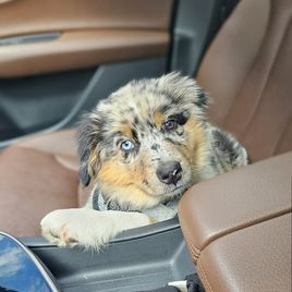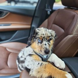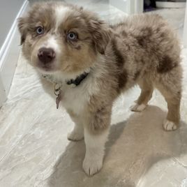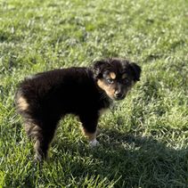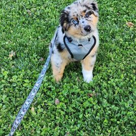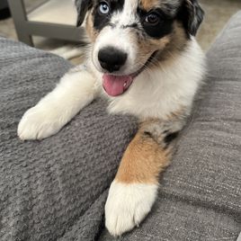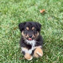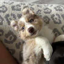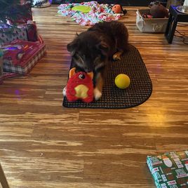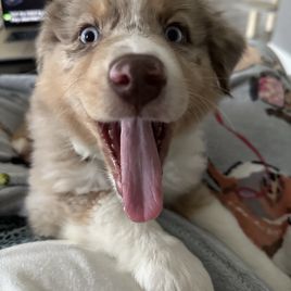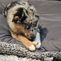 Nova is settling into her forever home really quickly. She's captured all of our hearts with her energy and of course endless puppy kisses. She loves to play with balls in the yard, play chase with her new puppy friends Honey and Buddy, and play with her toys. This experience of deciding Nova was the one all the way to picking her up was easy. She was handed over with a binder of paperwork that was extremely organized and Nova's vet was very thankful for the knowledge it contained and confirmed her health was great as the paperwork provided stated. I would recommend KSH Aussie 100% to anyone looking for an Aussie!!
