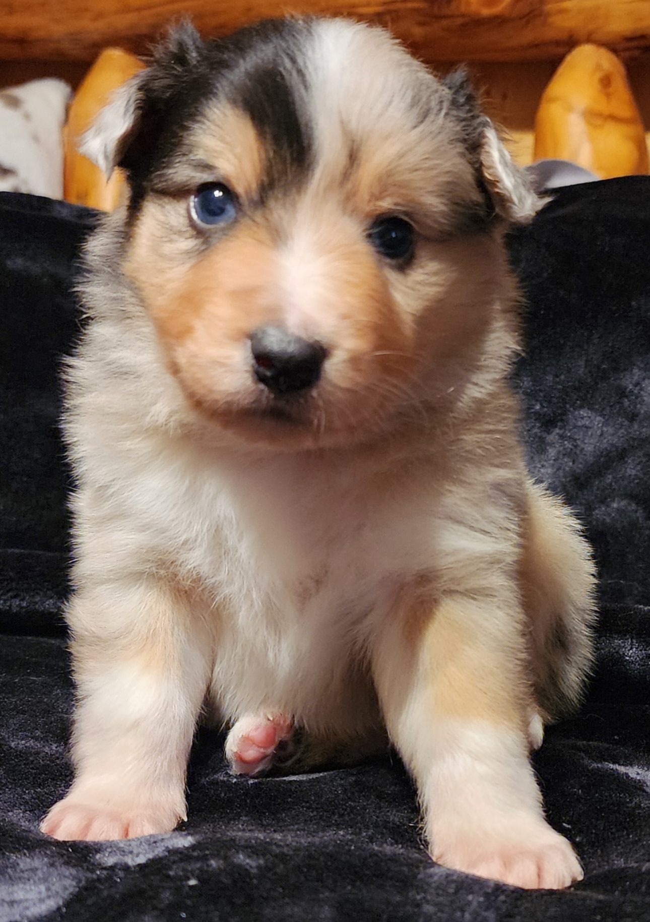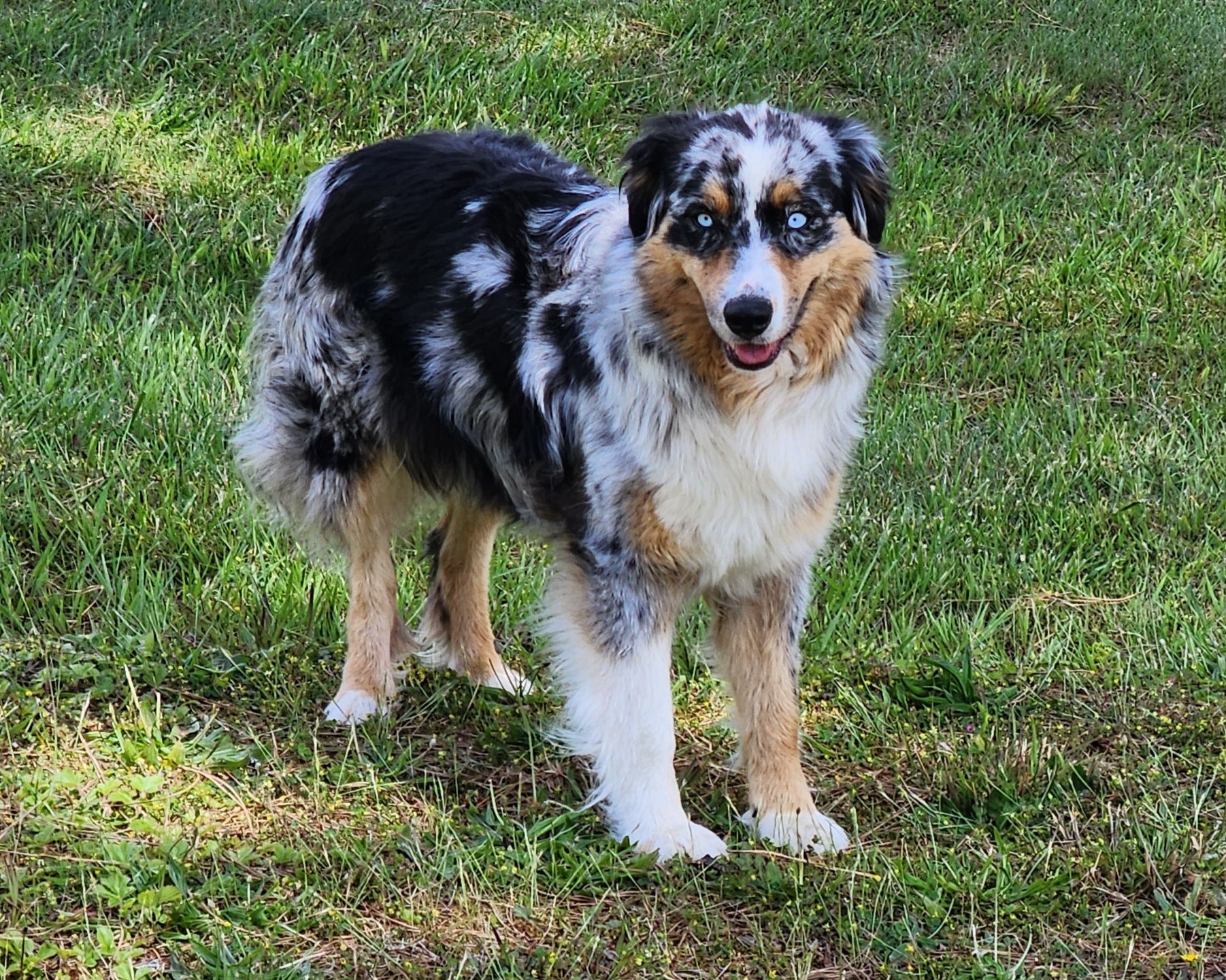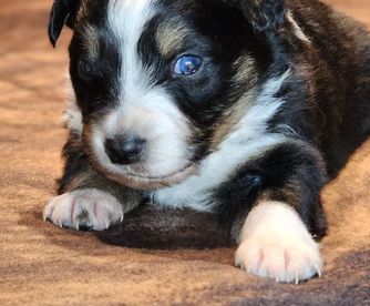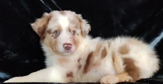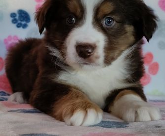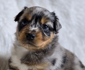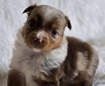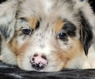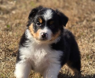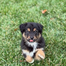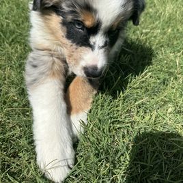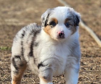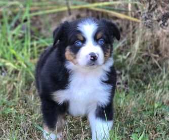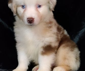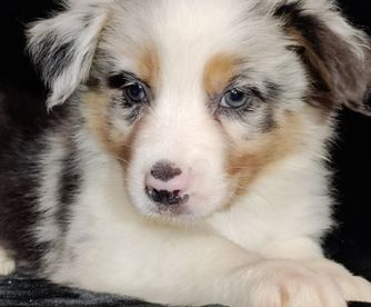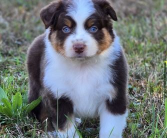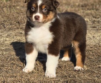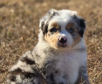 Our Australian Shepherd puppies include red merle, blue merle, black tri-color, and red tri-color. Miniature Australian Shepherd puppies include blue merle, black tri, red tri, and red merle. Colors will vary depending on the parent dogs.
