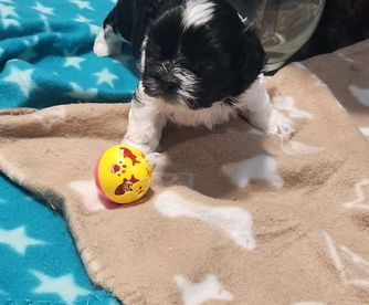 We have named out little boy Eddie, and he is a spunky little puppy.