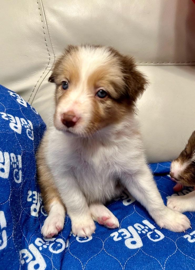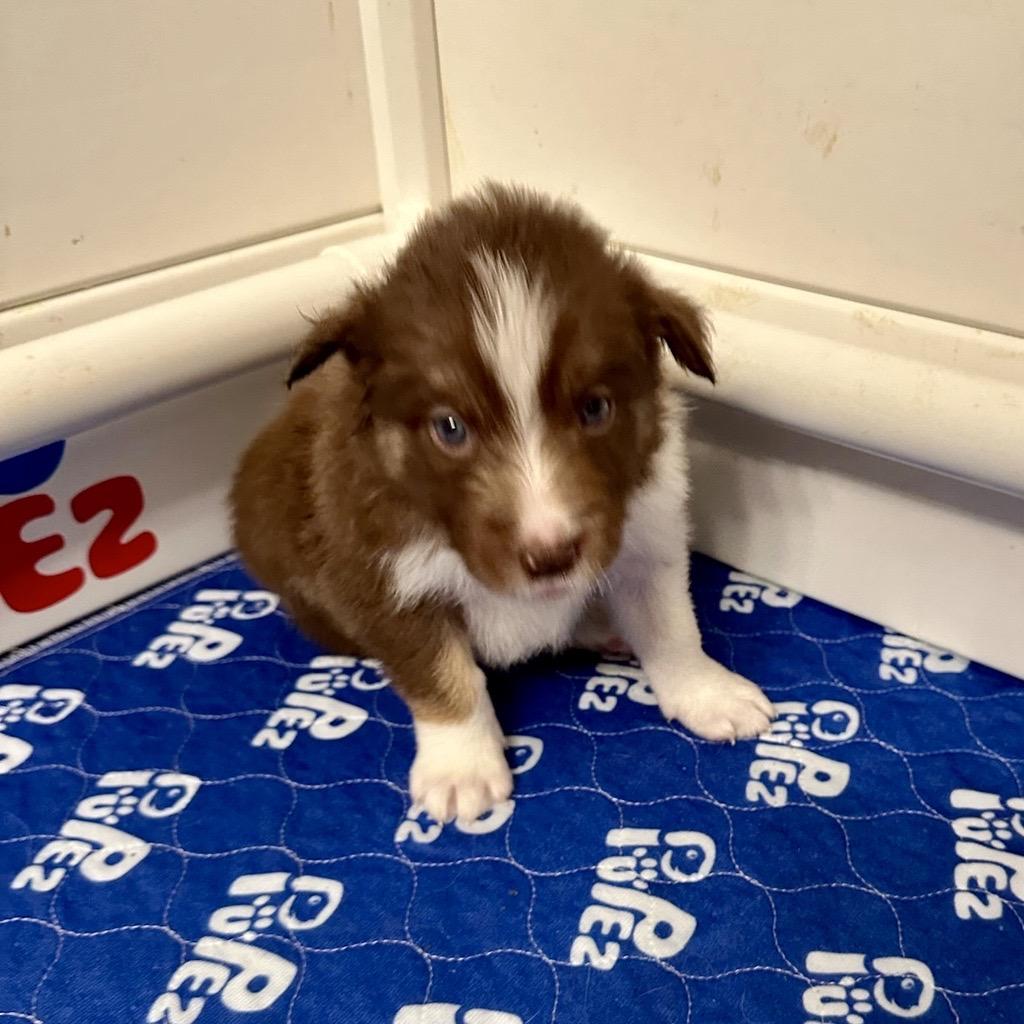Our puppies include tri-color, blue merle, red merle, and white and red. Colors will vary depending on the parent dogs.