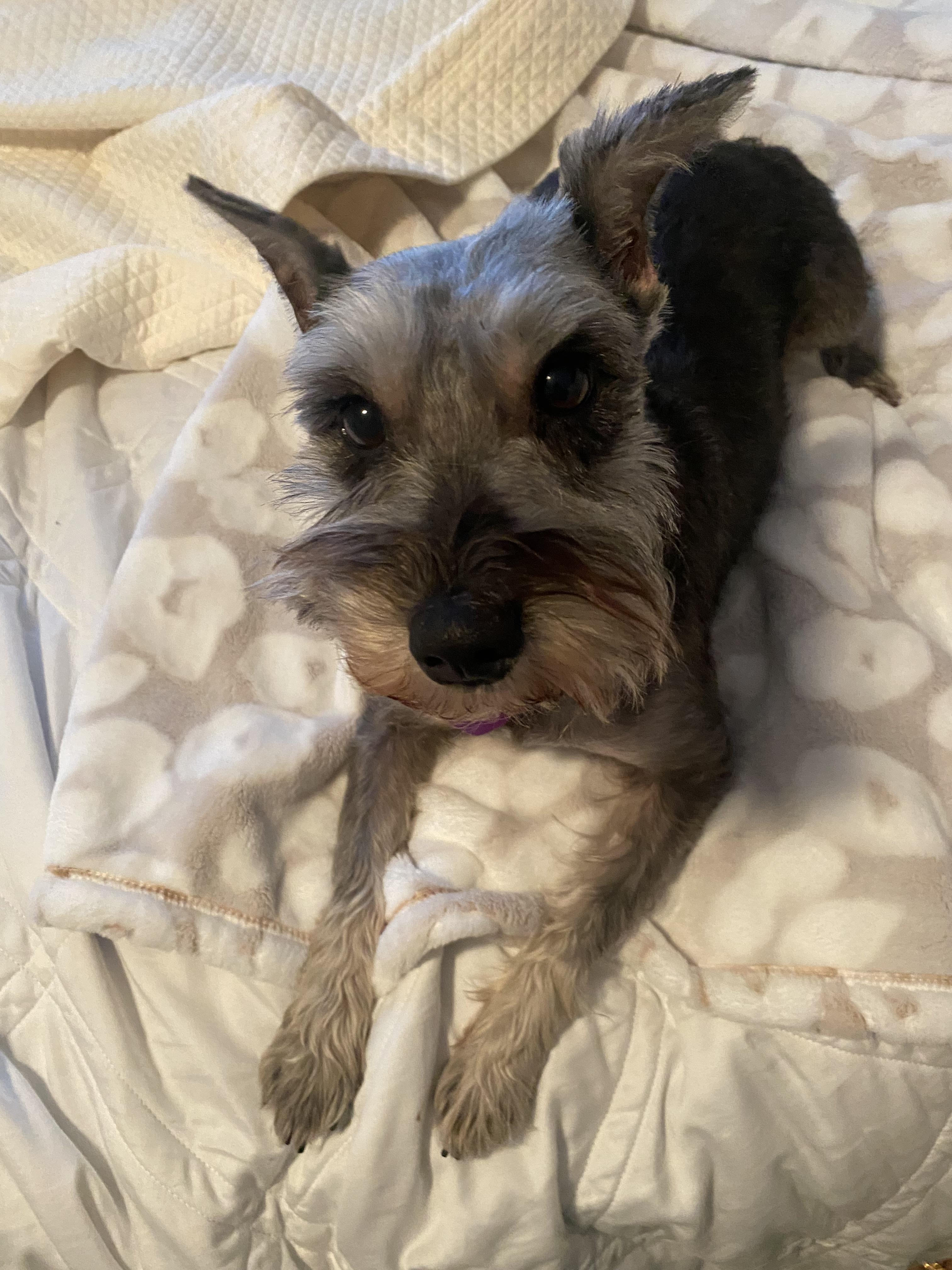 Rusty is a male Miniature Schnauzer. Carefully selected as a great representative of his breed, Kylie decided to make him part of their program. Kylie has passed Good Dog’s screening process, which involved a review of their breeding practices, environment, and the mental and physical health of their dogs.