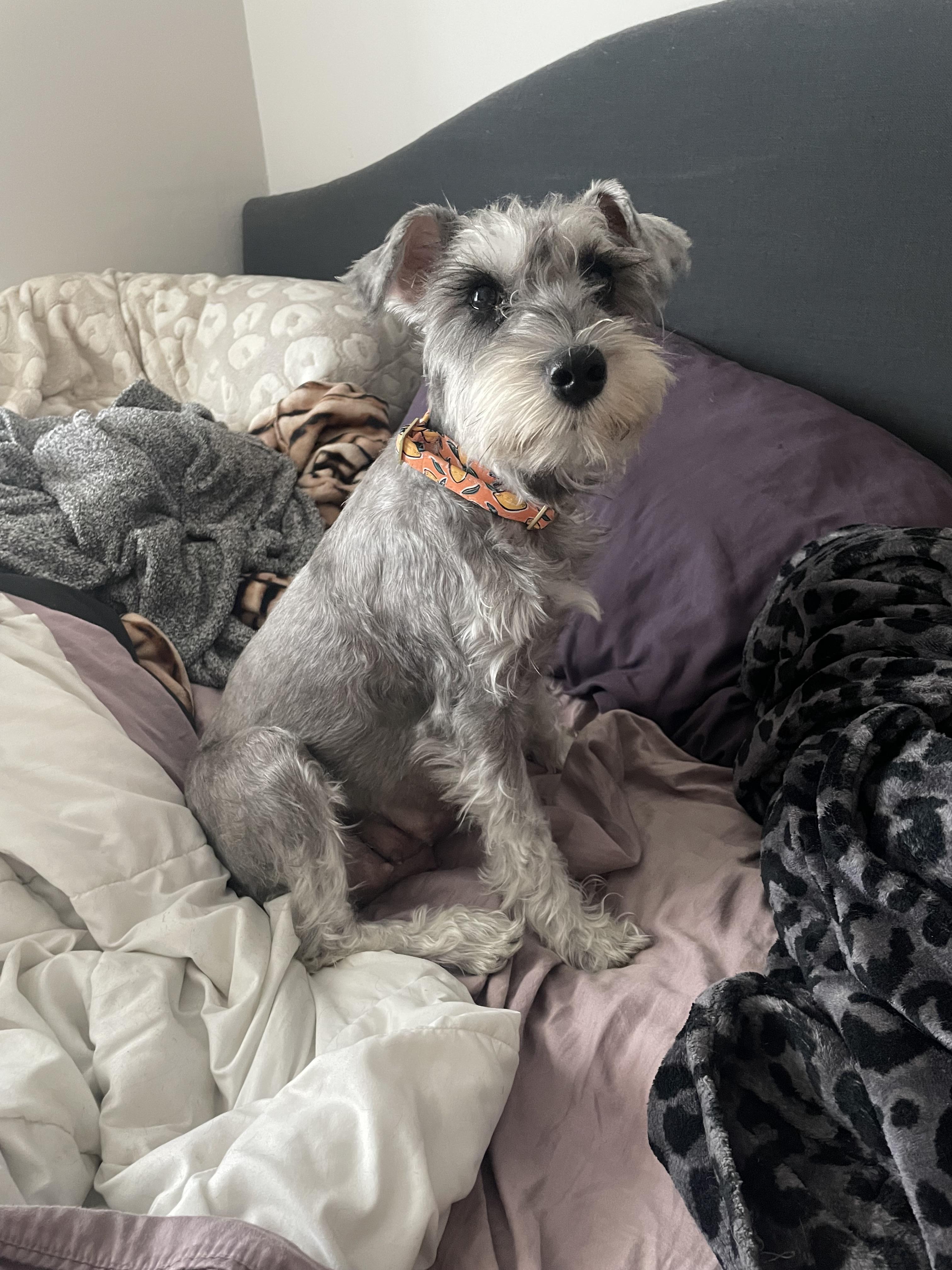 Buckley is a male Miniature Schnauzer. Carefully selected as a great representative of his breed, Kylie decided to make him part of their program. Kylie has passed Good Dog’s screening process, which involved a review of their breeding practices, environment, and the mental and physical health of their dogs.