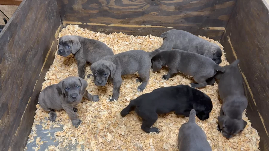 Our puppies include gray and fawn, chestnut brindle, black, black brindle, gray, gray brindle, and red. Colors will vary depending on the parent dogs.