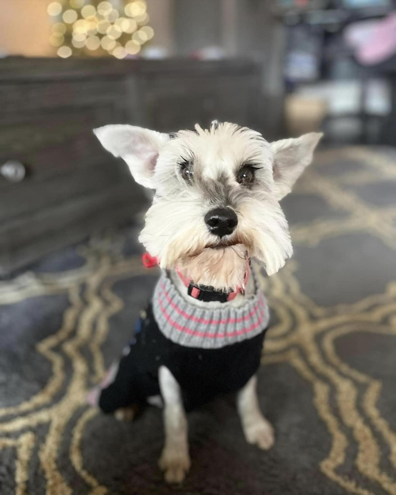 Stuart is a male Miniature Schnauzer. Carefully selected as a great representative of his breed, LaCree decided to make him part of their program. LaCree has passed Good Dog’s screening process, which involved a review of their breeding practices, environment, and the mental and physical health of their dogs.