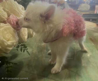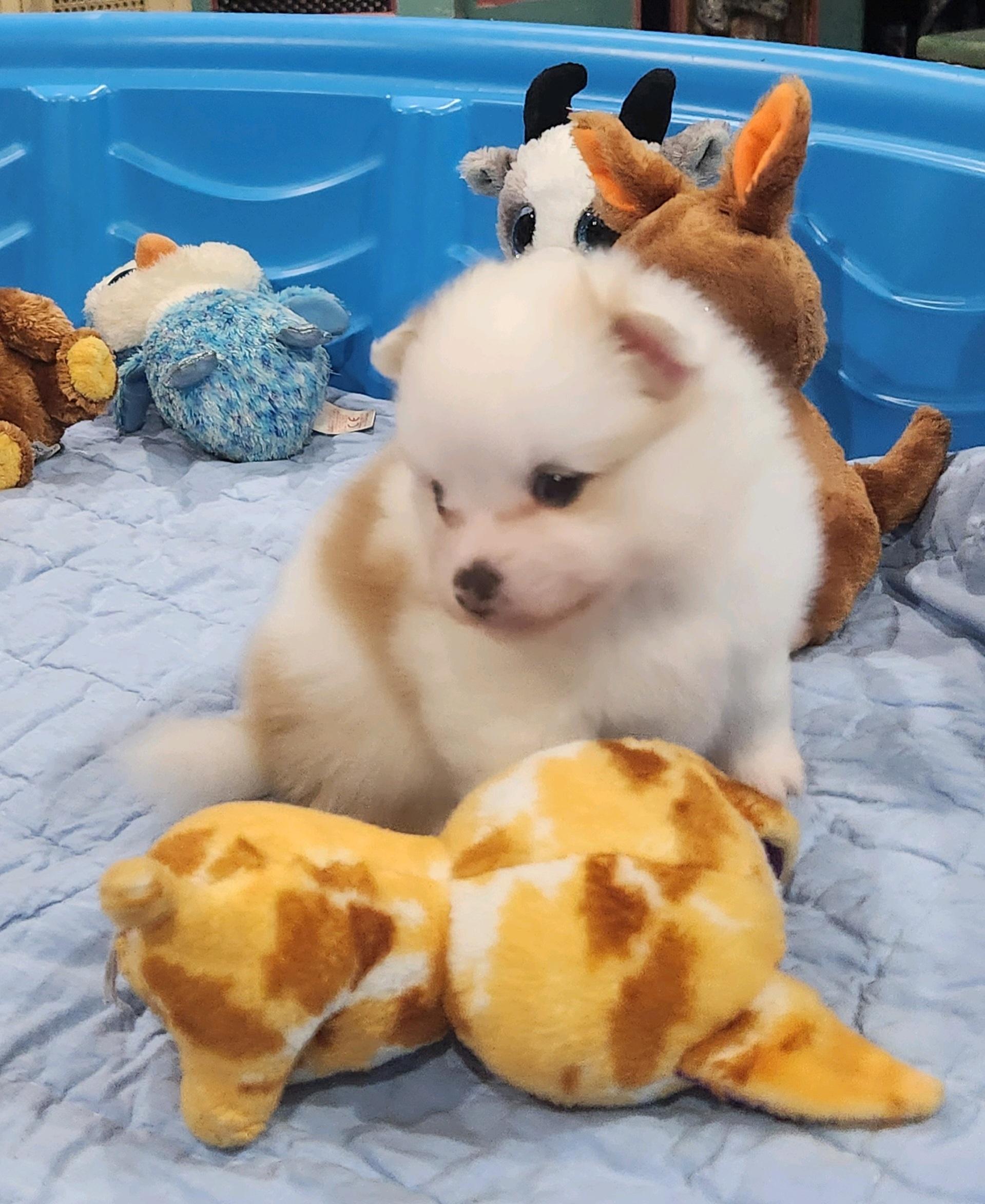 She is WONDERFUL! We spent days and nights texting and talking. Even a month after we brought Frostie home she has stayed in contact. She truly cares about her animals and customers. She is the sweetest, most honest Pom breeder I have ever had the pleasure of working with. We love our Frostie girl. We flew out to Baltimore from Colorado to get her, and she is everything we had hoped for. All of her Poms come with microchip, AKC papers, and shots and a full packet. She goes above and beyond to make the buying experience go smoothly. I absolutely adore her and have not only received the most amazing beautiful family member, but also a lifelong friend in the process. If you are wanting a high quality Pomeranian you need to get one from Madeleine. She even home cooks all of her Poms meals. She is just amazing! Thank you for everything you did for us, and thank you for our Frostie girl!