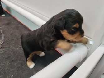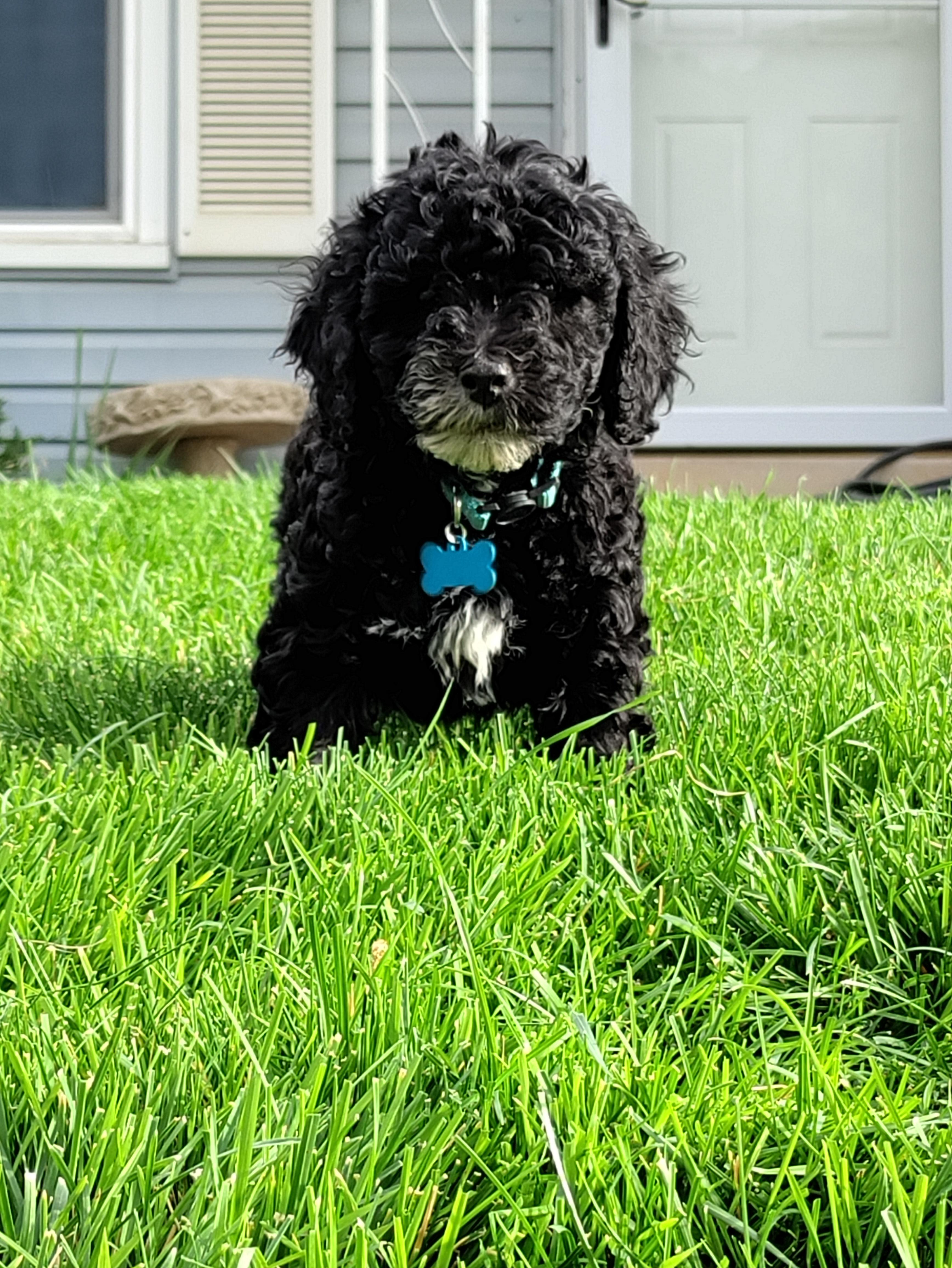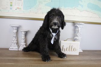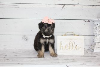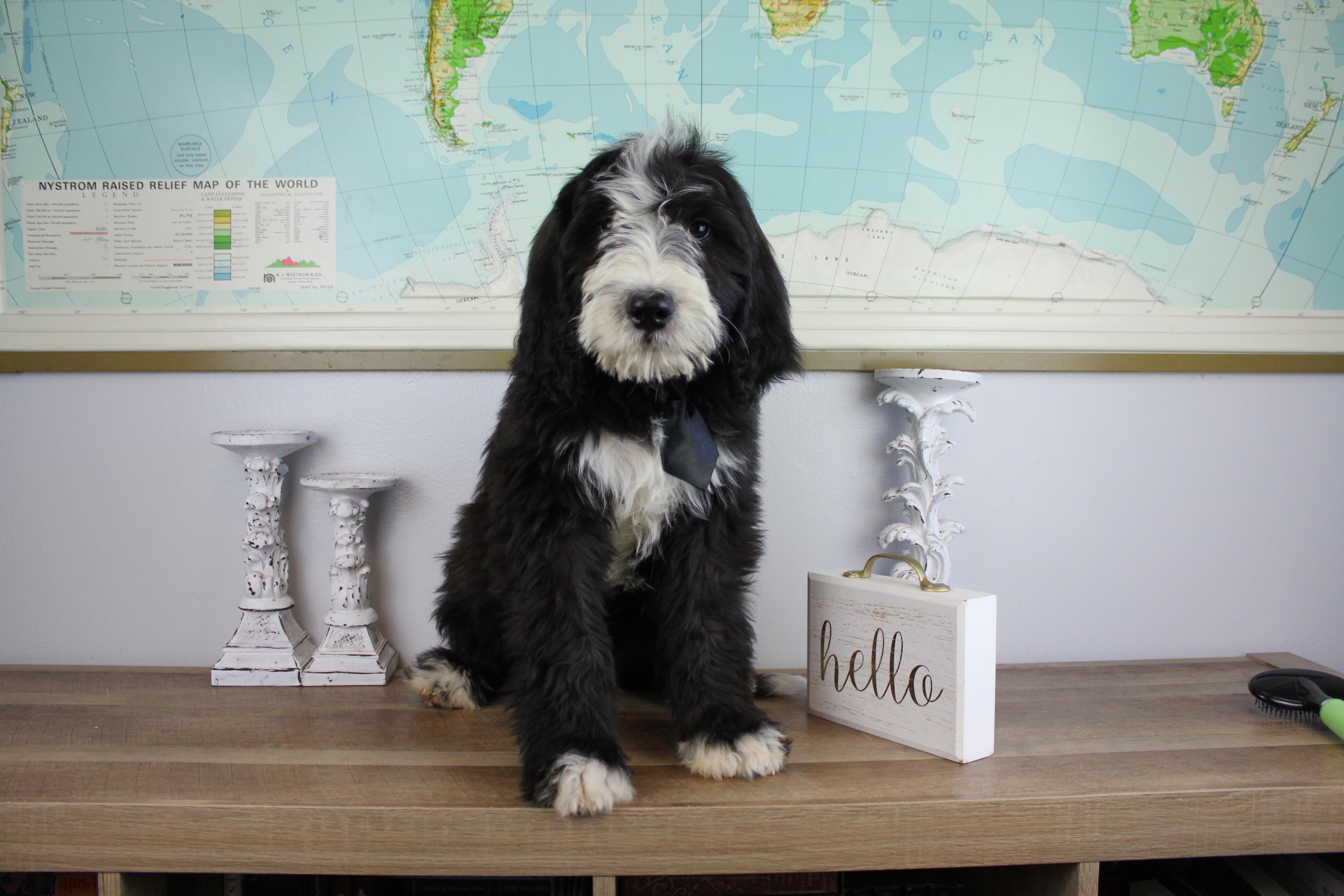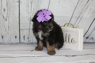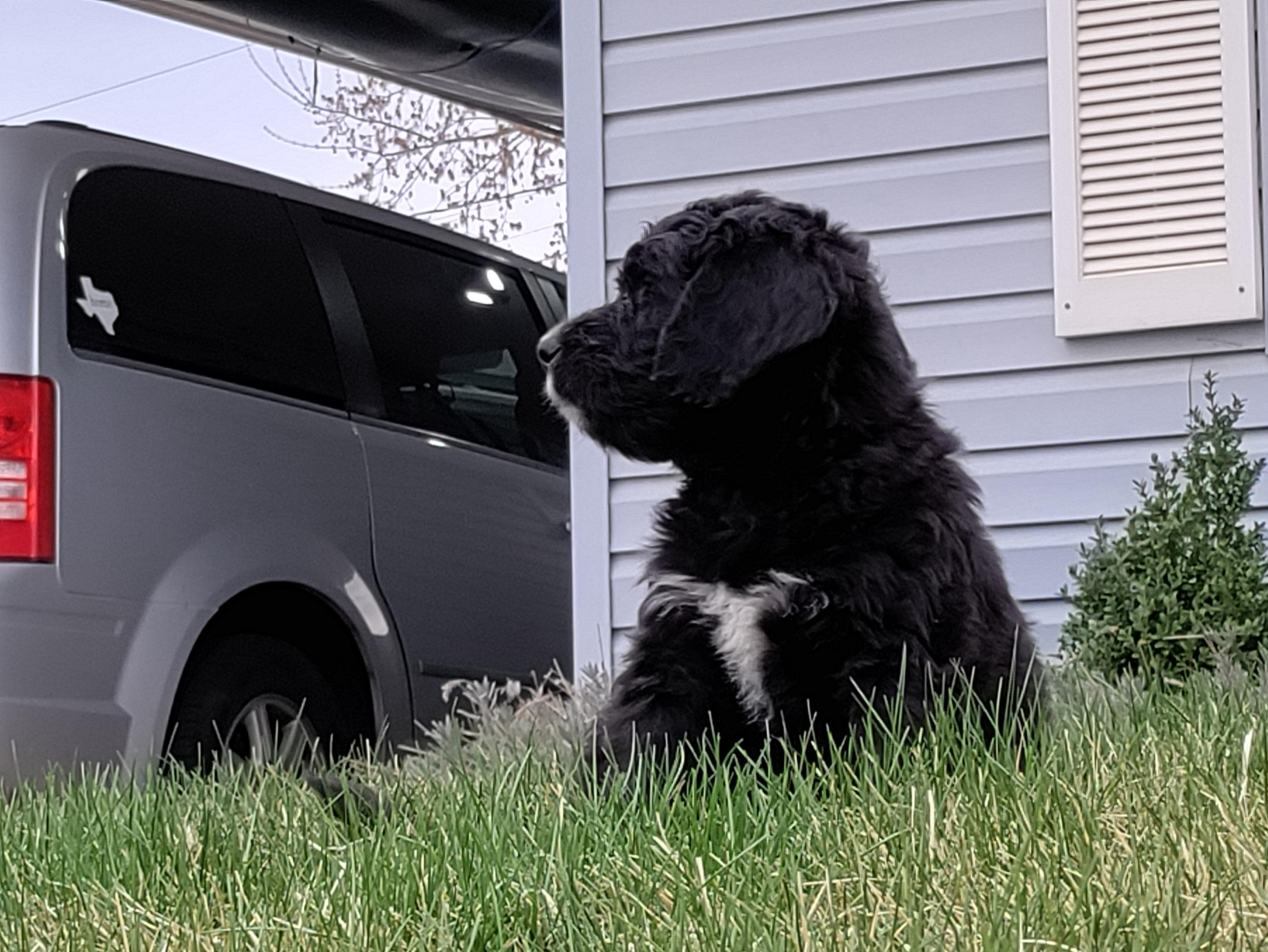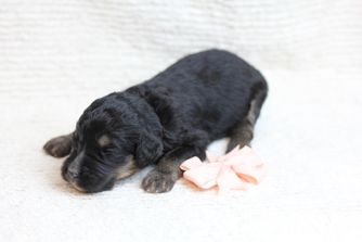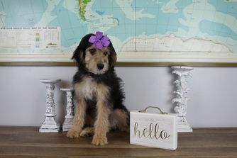 Our Aussiedoodle puppies include black and white and black tri-color. Colors will vary depending on the parent dogs.