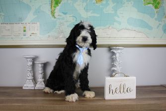 Our Aussiedoodle puppies are mini size. Bernedoodle puppies include mini and standard sizes. Sizes will vary depending on the parent dogs.